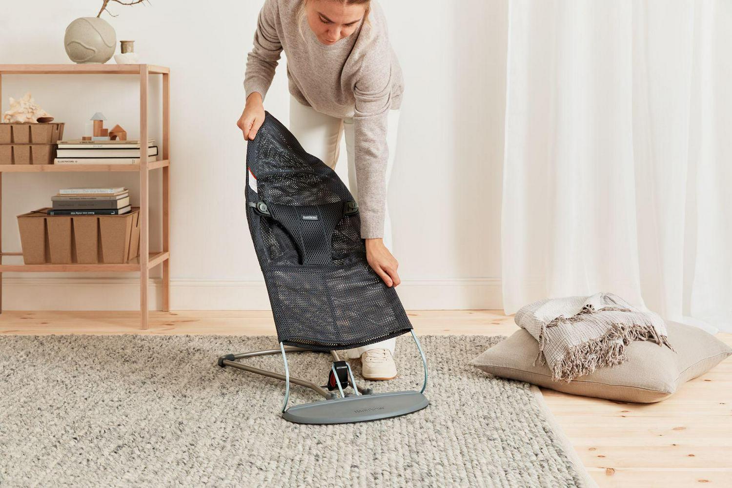 Introducing Bouncer Bliss: our classic, award-winning baby bouncer in a new design. The light gray base and frame creates a soft impression, and the monotone fabric seat provides a luxurious feel that will be an attractive detail in your home. Bouncer Bliss is available in a plush cotton quilting and soft, child-friendly mesh – two extra cozy fabrics for a soft start to life. Bouncer Bliss gives your baby a cozy place to rest and play. The ergonomically shaped seat provides proper support to your baby’s back, neck and head. The gentle, natural bouncing motion is controlled by your or your baby’s movements. No batteries or cords are needed, and the baby bouncer makes no noise. Bouncer Bliss is lightweight and portable, allowing you to safely keep your little one close when you need to shower, make dinner or simply need to use both of your hands. Bouncer Bliss has three different positions and folds completely flat when you’re on the go. The fabric is easy to remove and machine washable. Suitable for children aged 0-2 years.