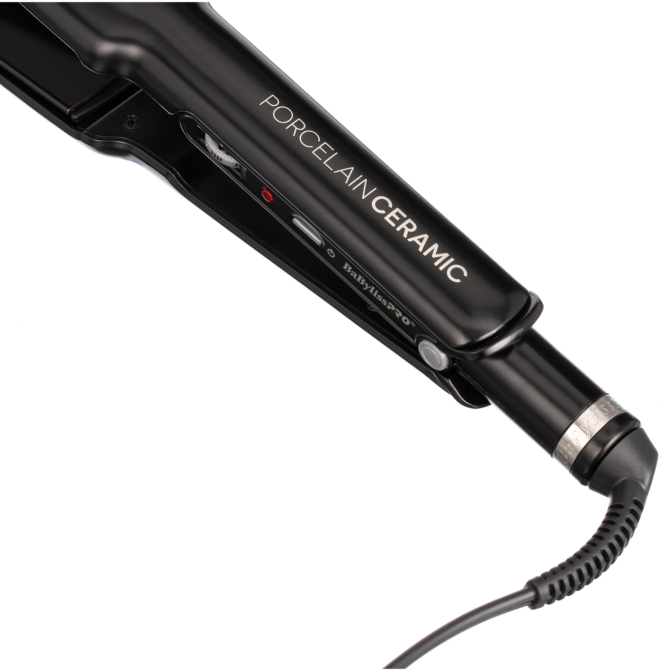 BabylissPro Ceramic 1quot; Flat Iron’s porcelain ceramic technology in this straightening iron distributes even heat across the plates and generates far-infrared heat, a more efficient heating method, which is gentler to hair. Rheostatic dials let you select desired temperatures up to 450176;F and the ceramic heater provides instant heat-up and recovery, while the longer plates allow you to work faster with wider sections. The result is smooth, sleek and healthy-looking hair!