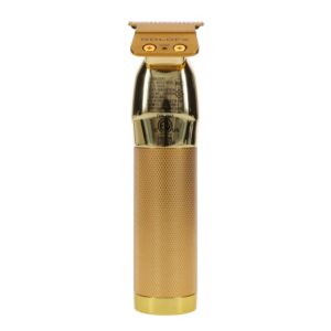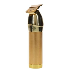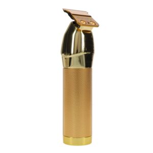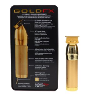 GoldFX is a professional, all-metal, cord/cordless lithium outlining trimmer. Featuring an exposed T-blade with 360 degree views, making this the first of a kind! The perfect tool for crispy edge ups, hard lines, and all other detail work. Welcome to the new gold standard of outlining trimmers. GoldFX is an all-metal, cordless trimmer that features a 360° view of the T-blade for flawless outlining.