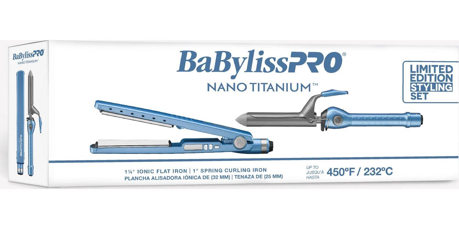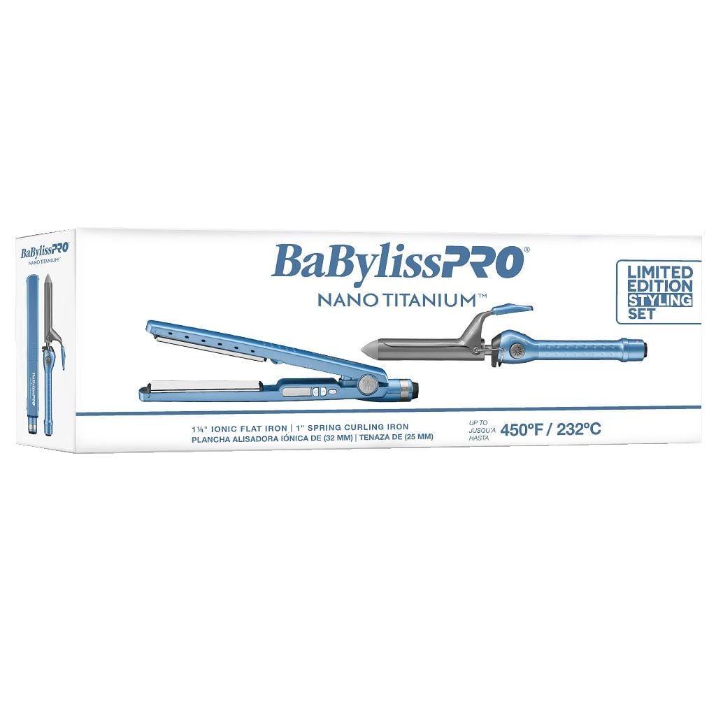 BabylissPro Nano Titanium Limited Edition Giftset (1 1/4 Ionic Flat Iron and 1 Spring Curling Iron)