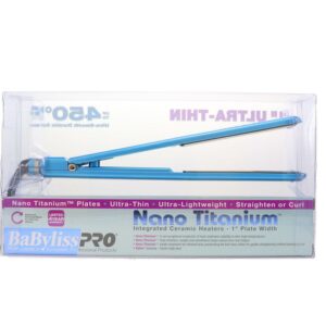 Get the smooth styles you want with the BaBylissPRO Nano Titanium-Plated Ultra-Thin Straightening Iron. The titanium plates are super smooth to create straight, swingy tresses. The BaByliss PRO is made tough to take the heat–up to 450F, but lightweight enough that your arms won’t get tired. The irons are balanced to feel comfortable in your hand and easy to use. Temperature is controlled with an LED readout.