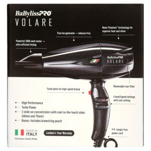 BaBylissPRO Nano Titanium Volare V1 Full-Size Dryer Ferrari-Designed Engine Black