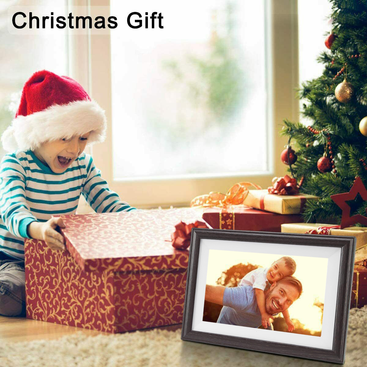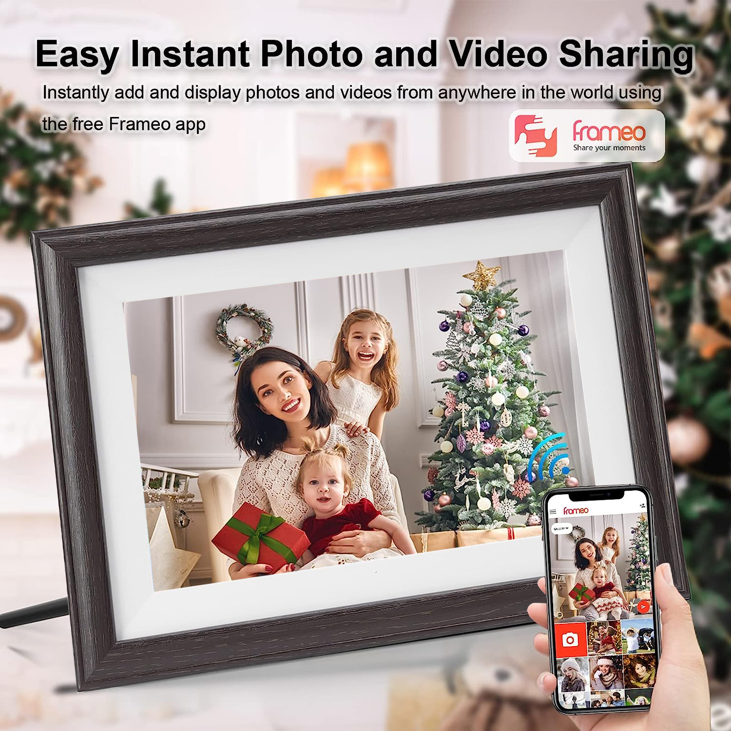Babyltrl 10.1″ Wifi Digital Photo Picture Frame with Automatic Slideshow Video Music Movie For Christmas Gift 10.1″ inch Wifi Digital photo frame comes with the powerful photo management,With large of memory the frame can store up to 80,000 photos. Digital photo frame features: 1. User-friendly interface and design make it super easy to use. 2. Wifi connection: Share photos and videos instantly from your smartphone for anywhere(max. 15 seconds). 3.Multi-User Connection.Anyone invited can share pictures/vedio to the frame. 3. Easy to use: Just download the free frameo app, set-up the frame on WiFi, and invite family and friends to share photos and small videos (max. 15 seconds).You can share your memorable moments anywhere, anytime. 4. HD IPS Touch Screen: This 10.1 inch digital picture frame is featured with a 1280*800 IPS touch screen which allows you to get a nice visual from any angle. 5. 16GB Storage: Stores up to 80,000 photos with large of memory. 6. Auto Rotate: With the auto-rotate function, the digital frame can automatically rotate photos to adjust the direction to fits the frame perfectly, It’s not only a photo frame but a work of art. 7. Suitable for different scenarios: is a perfect gift for birthday parties, father’s day, mother’s day, Valentine’s day, weddings, graduation ceremonies, holidays, christmas,and family gatherings! Digital photo frame Specifications: Memory:16GB Panel: 10 inch HD LED panel Resolution: 1280*800 Color: Black More Function : Calender, real time clock, alarm , set time on/off Notice: Parts: 1*wifi digital frame 1*Power supply 1*bracket 1*operation instructions