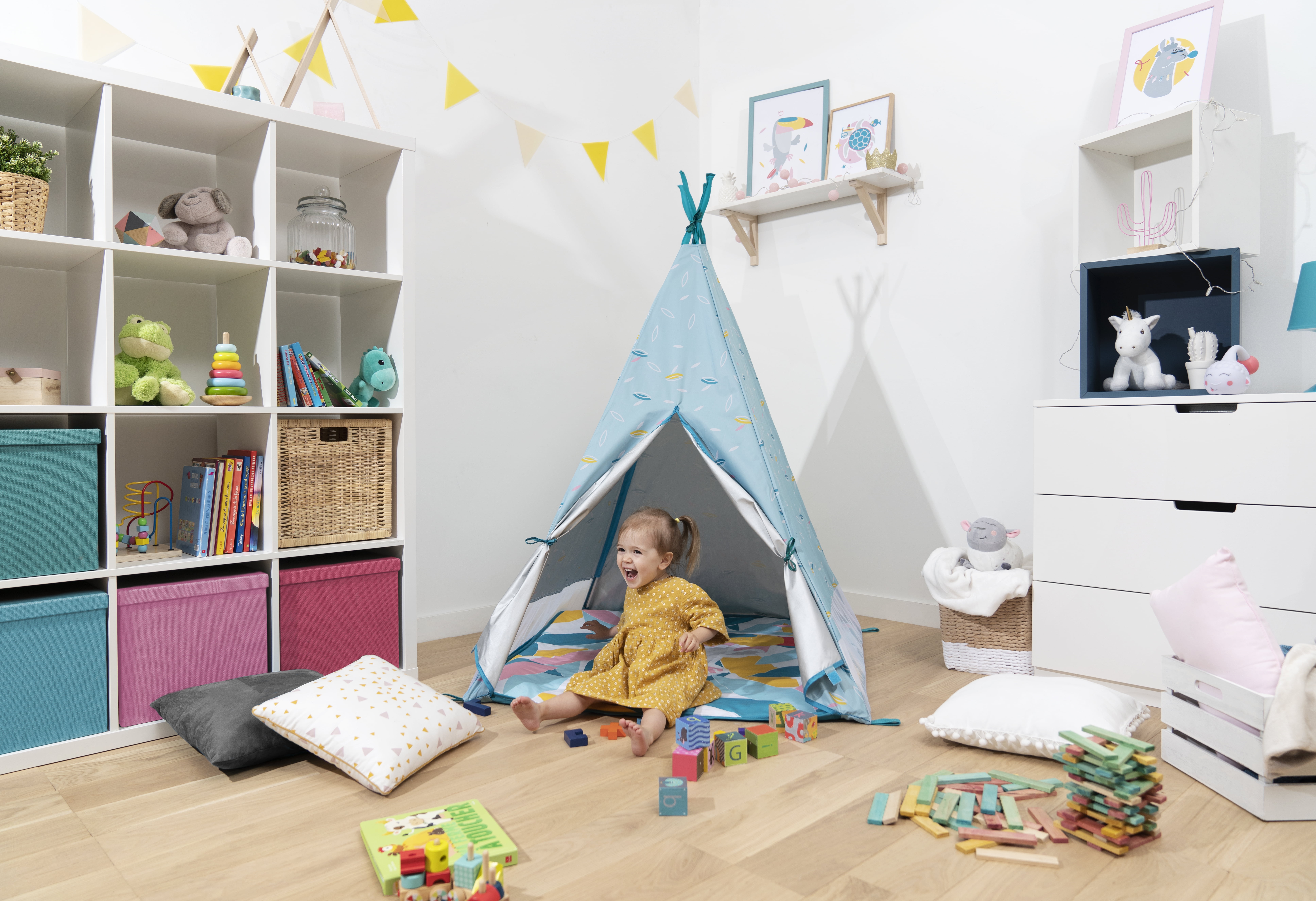 Children absolutely love making a den by draping sheets over chairs and hiding underneath with all their soft toys! With the Babymoov In&Out Jungle Tent anti-UV 50+, there’s no need for your little one to steal sheets off the bed to make their dream den. Children can play, sleep and hide inside this colourful tent in their bedroom, in the garden or on the beach. It takes just 5 minutes to set it up! A large, comfortable 3,2ft mattress fits inside. It has one super soft side and one waterproof side to provide protection from dampness in the ground. You can even use this mattress on its own like a playmat or in a playpen! The tent is very tall (height: 4ft). Its frame makes it sturdy and stable. Your child can play in it for several years, along with their brothers, sisters and friends. Don’t worry, your little one is protected from the sun too! This child’s tent provides protection from the sun’s rays with its anti-UV SPF 50+ fabric. There are ventilation holes at the base of the tent to let the air in and prevent your child from getting too hot. The tent comes with 4 pegs to hold it firmly in place in the ground for outdoor use. What’s more, it is compact and easy to store with its carry bag.