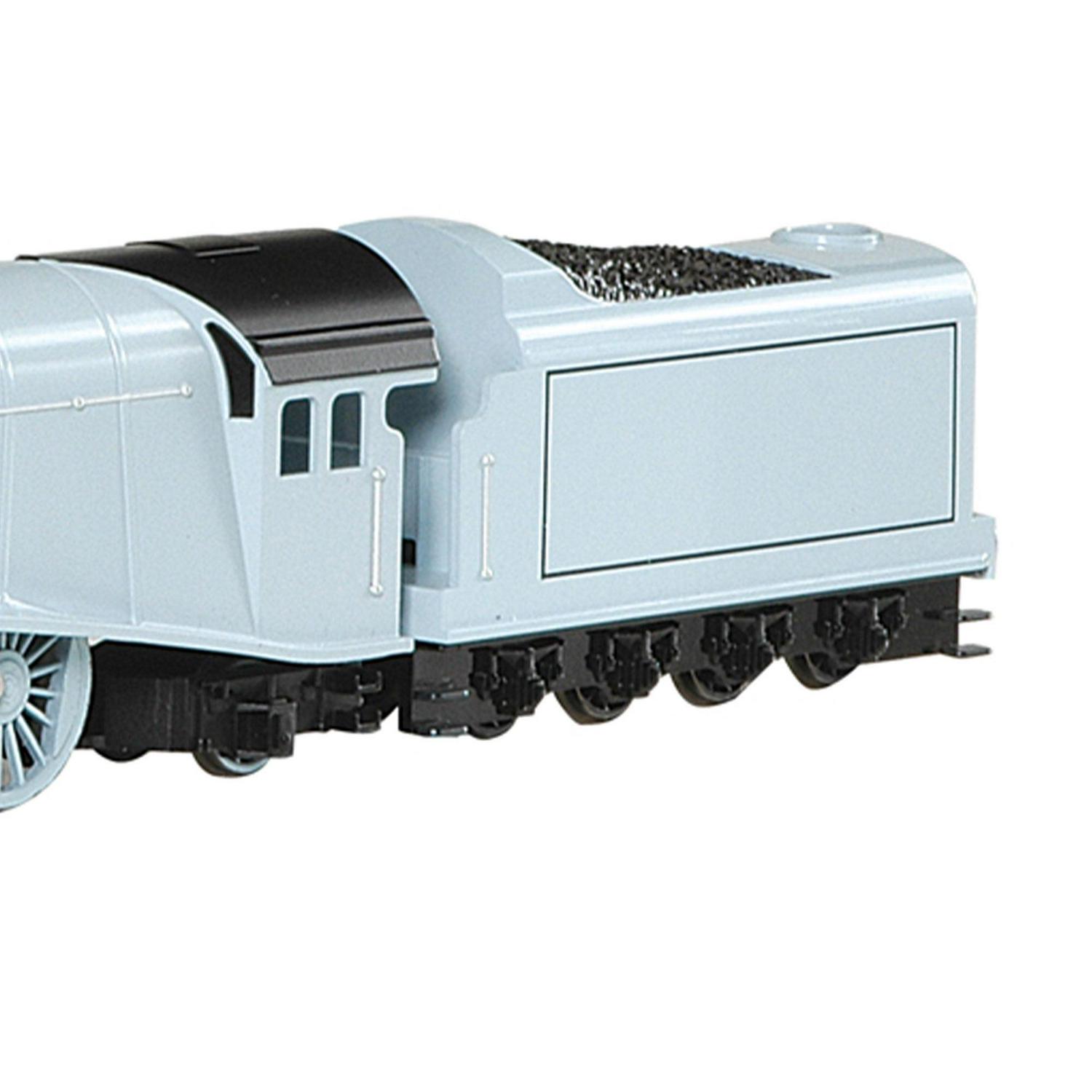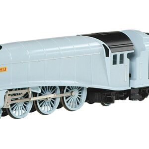 THOMAS & FRIENDS SPENCER ENGINE w/Moving Eyes – HO Scale. A striking silver express engine, Spencer is just about the shiniest, sleekest engine the Island of Sodor has ever seen. Spencer is very strong and very fast – and he makes sure the other engines know it! Spencer was brought to the Island as the private engine of the visiting Duke and Duchess of Boxford. Spencer is based on an LNER Class A4. Bachmann carefully reproduces your favorite Thomas & Friends characters in HO scale. All locomotives feature realistic faces with moving eyes, operating HO scale electric drive mechanisms, highly detailed plastic body shells, all-metal wheels, and international-style hook-and-loop couplers.