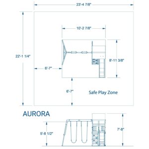 The Aurora by Backyard Discovery is the perfect wooden swing set for any sized yard. Whether your backyard is large or small, this playset offers a compact footprint with the perfect amount of outdoor play features to keep your kids entertained while leaving plenty of space for other outdoor activities. The Aurora is action packed with a 6 ft. super speedy slide, 2 position swing beam featuring 26 in. belt swings, a combination rock wall ladder and lower shaded fort that can double as a sand box. Unlike other, smaller outdoor playsets, this swing set has a larger than average, open air, upper clubhouse. With a combination of mesh and vertical wood pickets, we ve created a cool, breezy fort to relax in during those hot summer days. We even included a real chalkboard for your kids to create one-of-a-kind masterpieces. Kids of any age will enjoy Backyard Discovery s unique, new spin on traditional swing sets and hours of outdoor fun! This product is intended for RESIDENTIAL USE ONLY.
