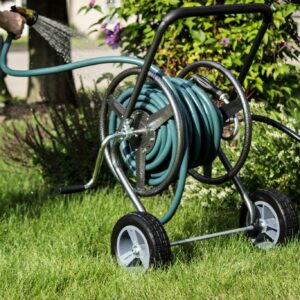 Backyard Expressions Commercial Two Wheel Hose Reel Cart – Heavy Duty – 350 Ft Hose Capacity