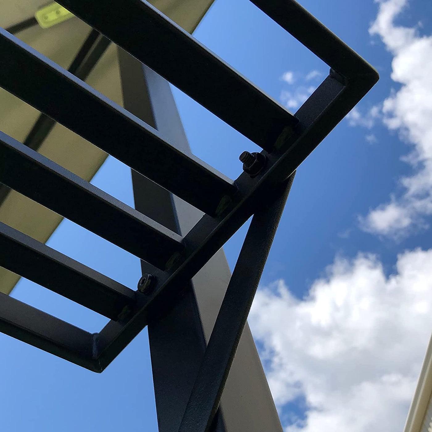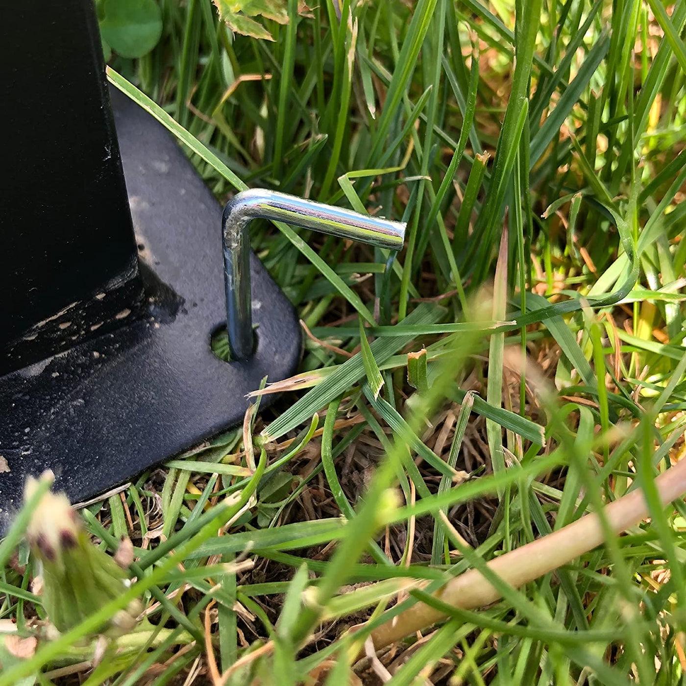 – This durable grilling gazebo is constructed of powder-coated black iron frame and is made to be stable. Please use the included stakes to ensure safety against winds.