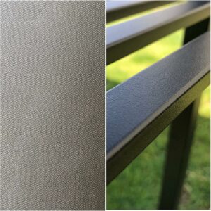 – The ventilated polyester top is high quality and resists water. The (2) level vented canopy will keep you safe from harmful UV Rays, while also allowing wind and smoke from the BBQ to vent off with ease.