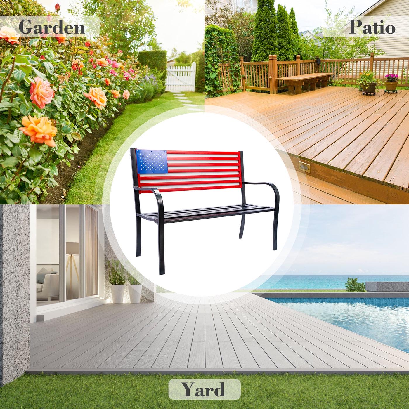 Backyard Expressions Metal American Flag Patio/Garden Outdoor Bench – Red/White/Blue