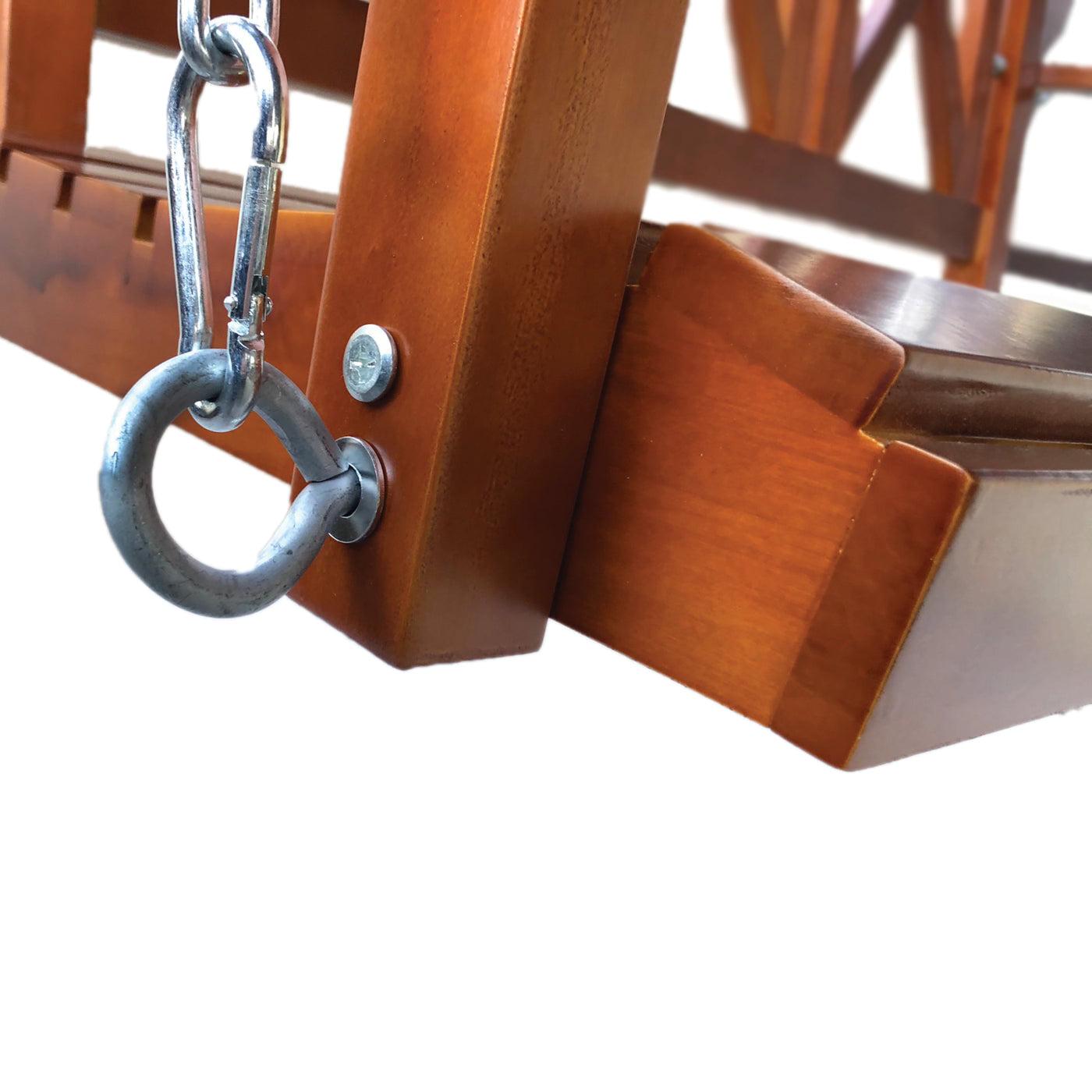 – Porch Swing has No Sharp Edges, only Smooth Beautifully Finished Solid Poplar Hardwood, In a Deep Mahogany Color
