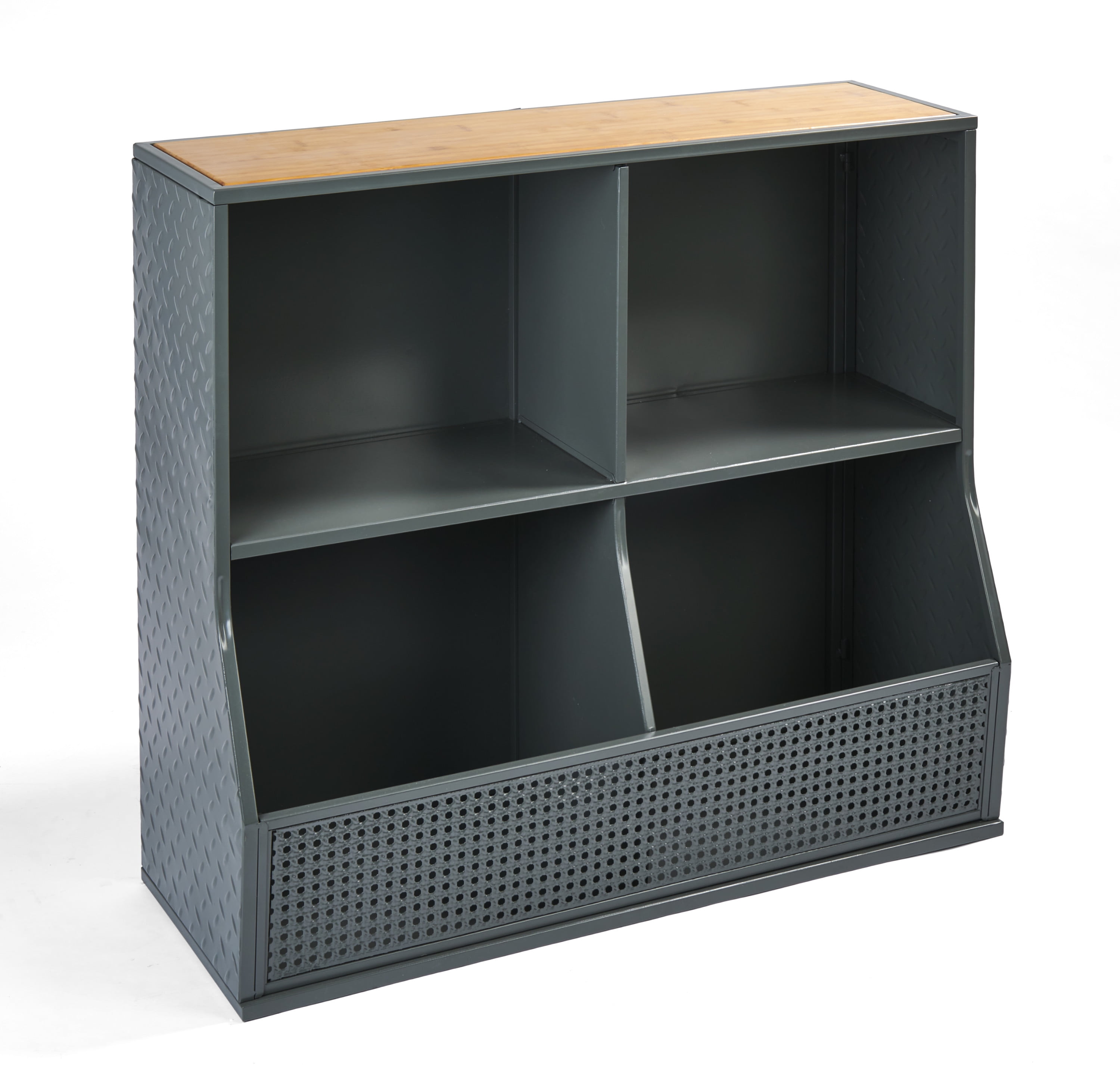 - Four cubby metal toy storage unit