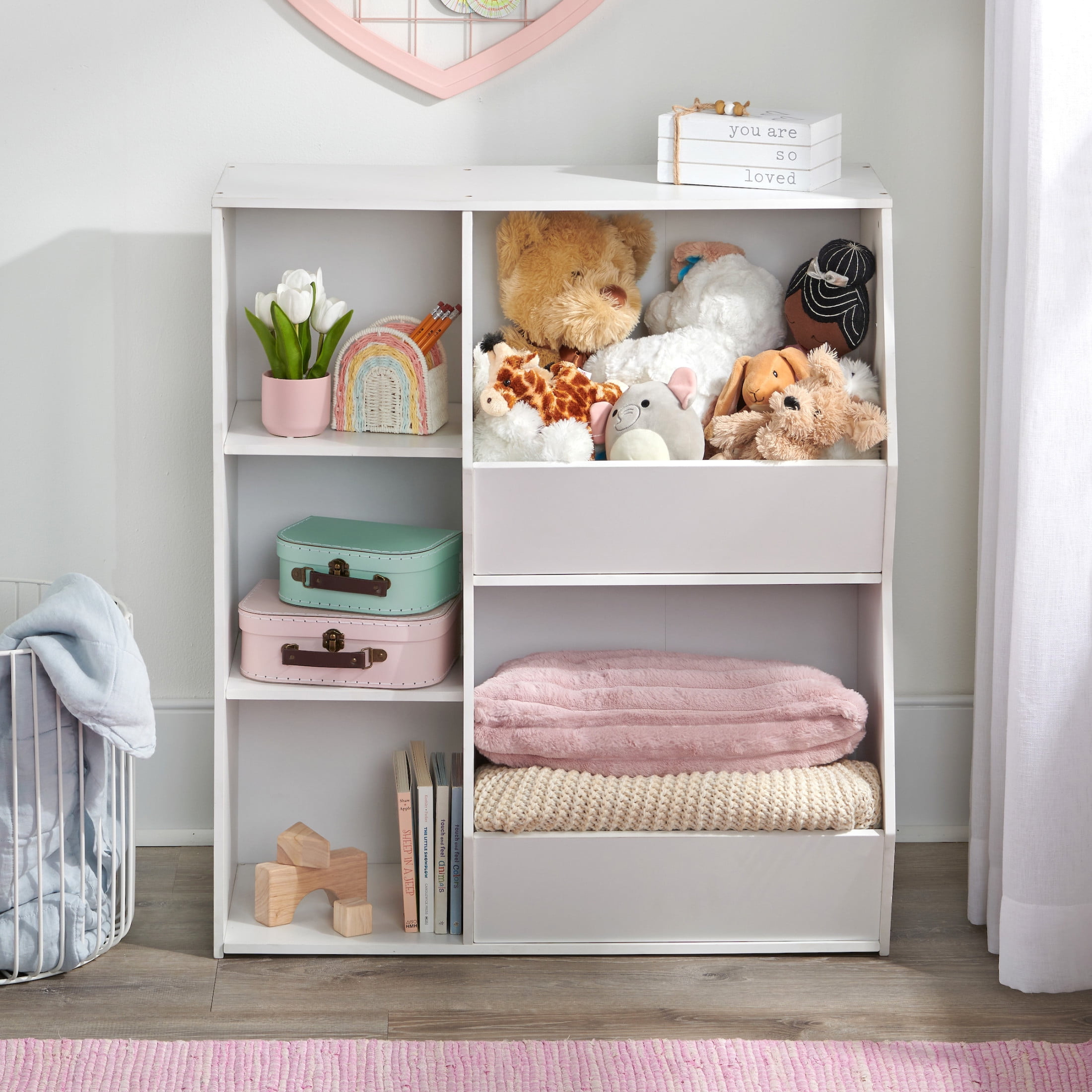 Kid’s toy storage and bookshelf in one unit Helps you to organize and keep clutter off the floor Easy to access bins encourage tidiness Compact design is great for tight spaces Includes a total of 5 storage bins Easy to clean melamine surface Overall measurement is 31.5″L x 15.75″W x 35.5″H Assembled weight is 38.75 lbs