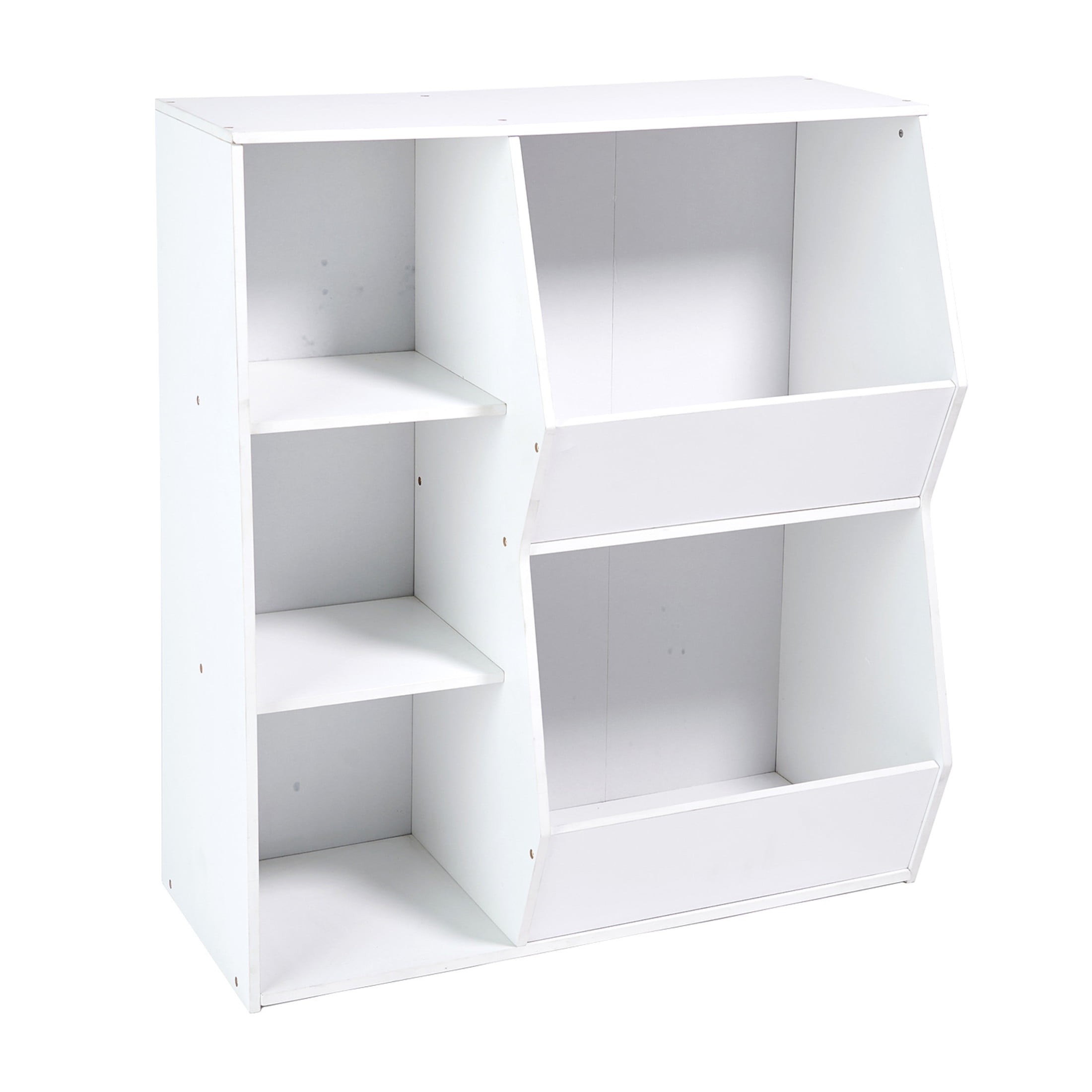 Badger Basket Side-by-Side Children’s Combo Bin Wood Toy Storage Bookshelf with 5 Cubbies 7.7 Cu ft. – White