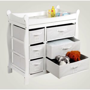 Badger Basket Sleigh Style Changing Table with Six Baskets-Finish:White
