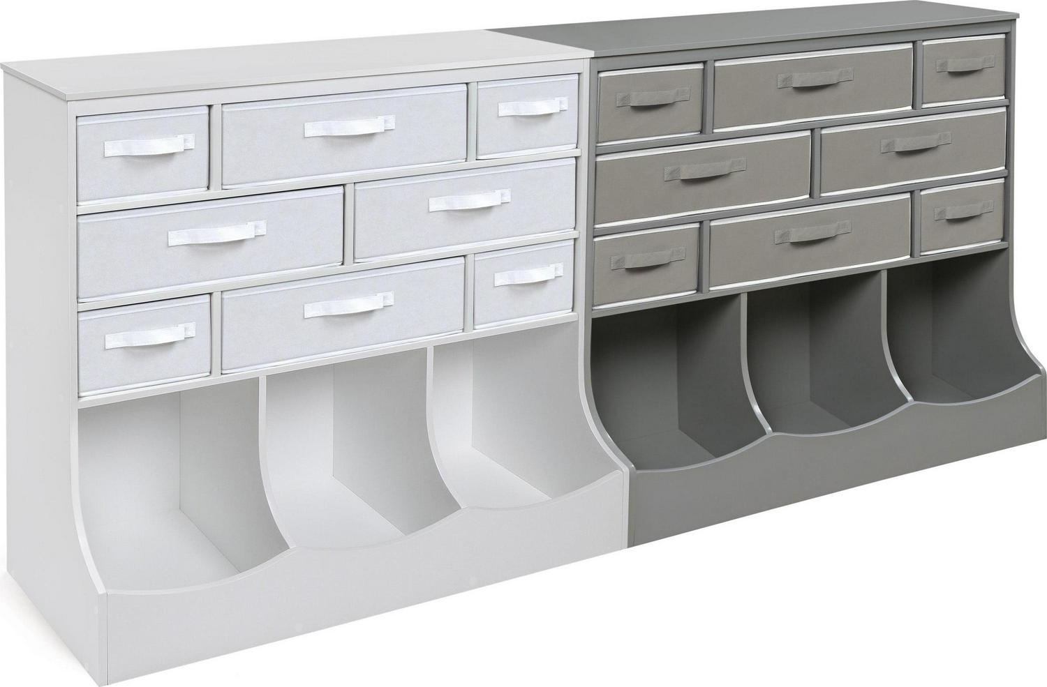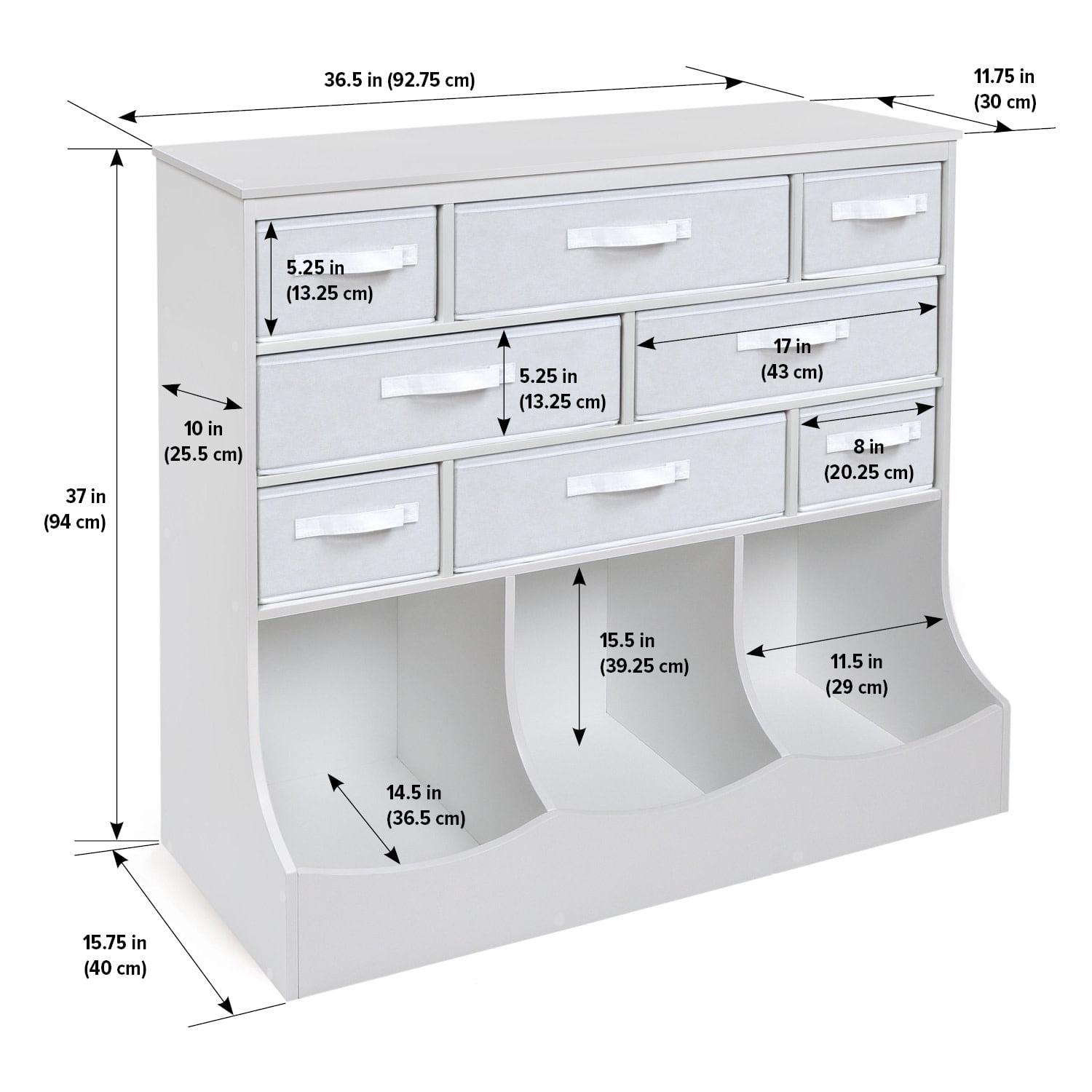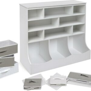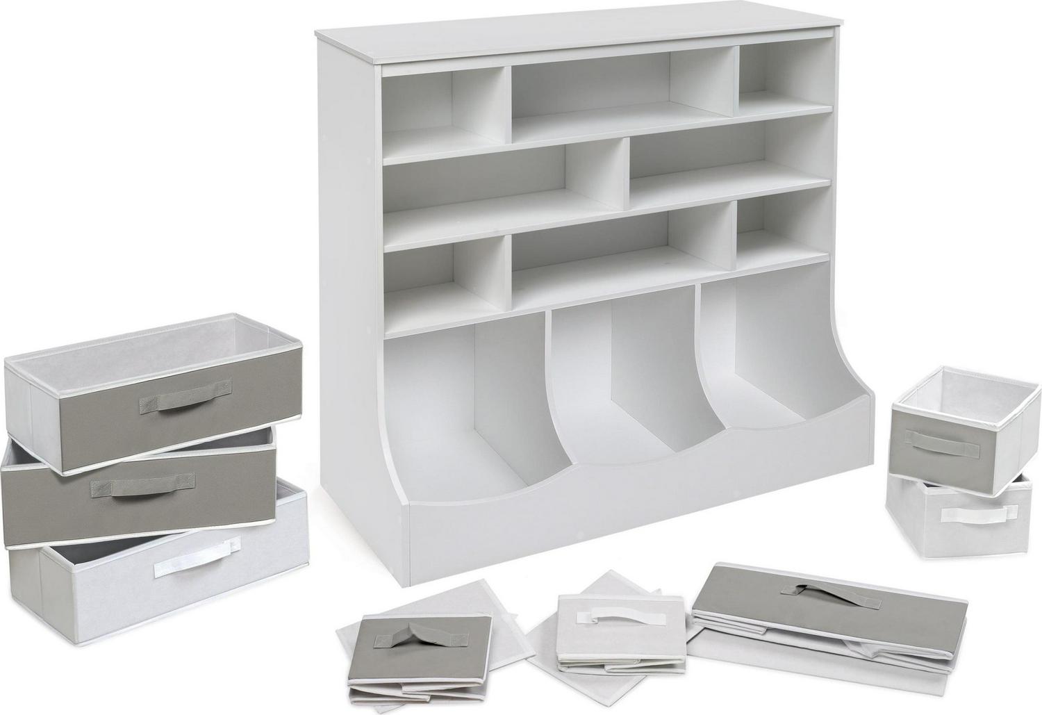 – Includes 8 fabric storage bins