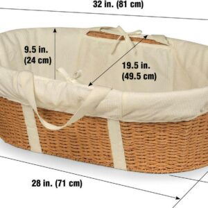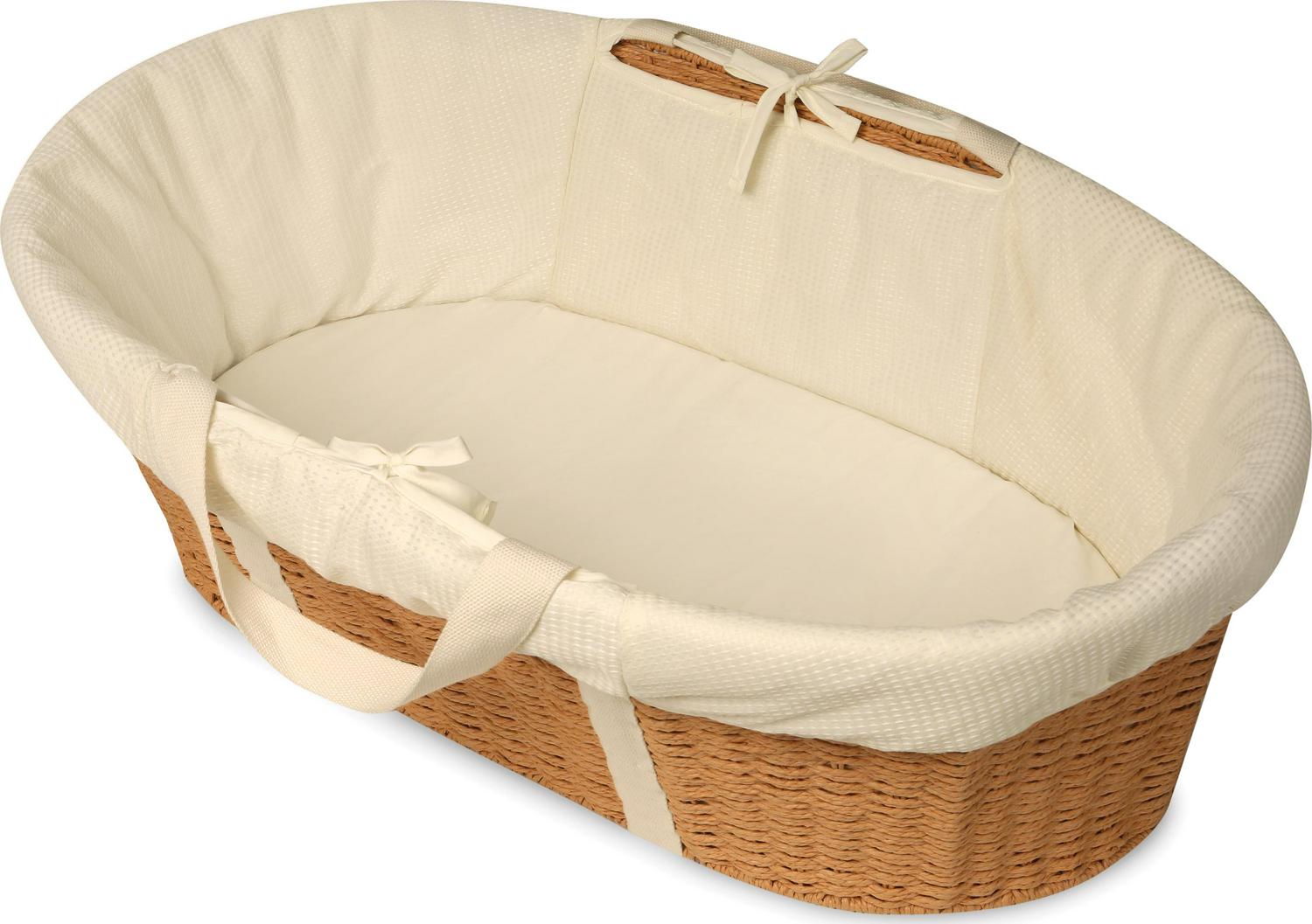 Badger Basket Wicker-Look Woven Baby Moses Basket with Bedding – Natural/Ecru