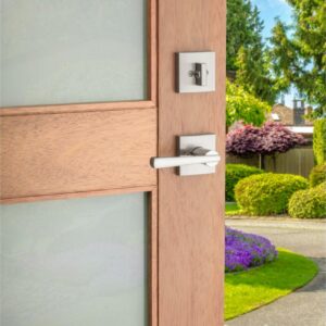 – Fits standard double bored doors with 5-1/2″ center-to-center door preparation