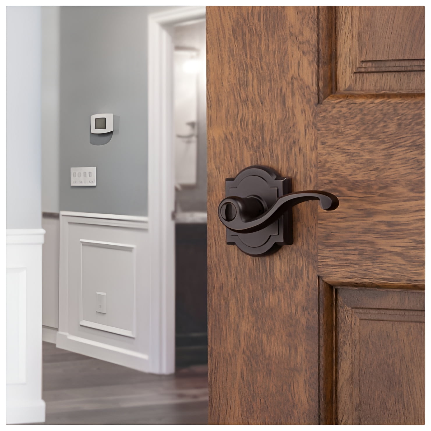 ⢠Baldwin Prestige offers effortless, accessible style and luxury with superior security ⢠Rustic lever design shown in a venetian bronze finish ⢠Includes 2 keys ⢠For use on interior doors where a privacy function is required, such as bedroom and bathroom doors ⢠Fits standard door preparations: 1-3/8″ to 1-3/4″ thick ⢠Latch has 3 interchangeable faceplates; round corner, square corner, and drive-in collar ⢠ANSI/BHMA grade 2 certified ⢠Latch has adjustable backset 2-3/8″ to 2-3/4″ to fit all standard door preparations ⢠Locking mechanism functions with turn piece on the interior of the lock ⢠Fully reversible lever, can be installed on both right handed and left handed doors ⢠Lifetime mechanical and finish warranty