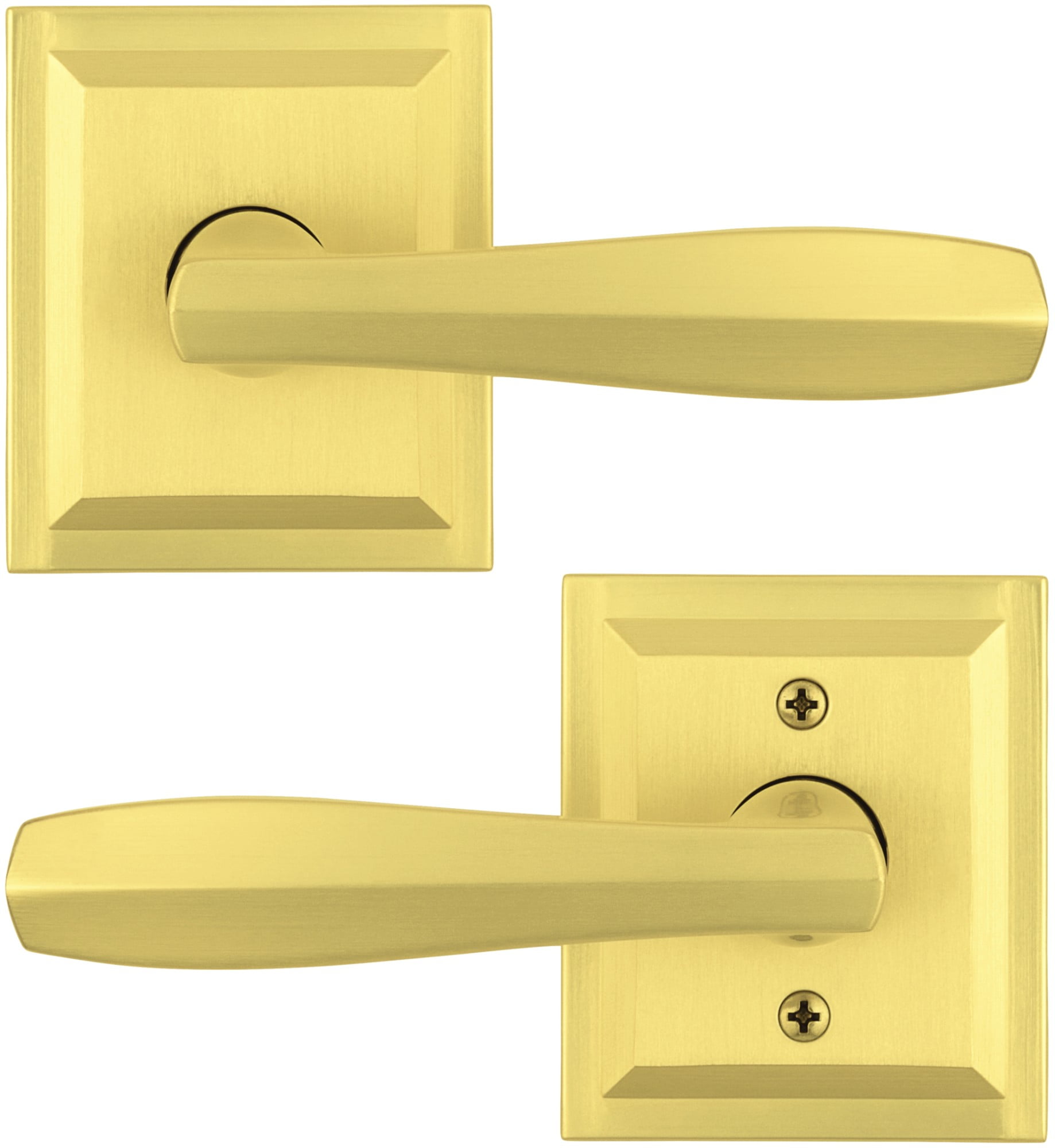Baldwin Torrey Pines Bed/Bath Door Lever in SN •Latch has 3 interchangeable faceplates; round corner, square corner, and drive-in collar •Latch has adjustable backset 2-3/8″ to 2-3/4″ to fit all standard door preparations •Locking mechanism functions with turn piece on the interior of the lock •Fully reversible lever, can be installed on both right handed and left handed doors •Lifetime mechanical and finish warranty