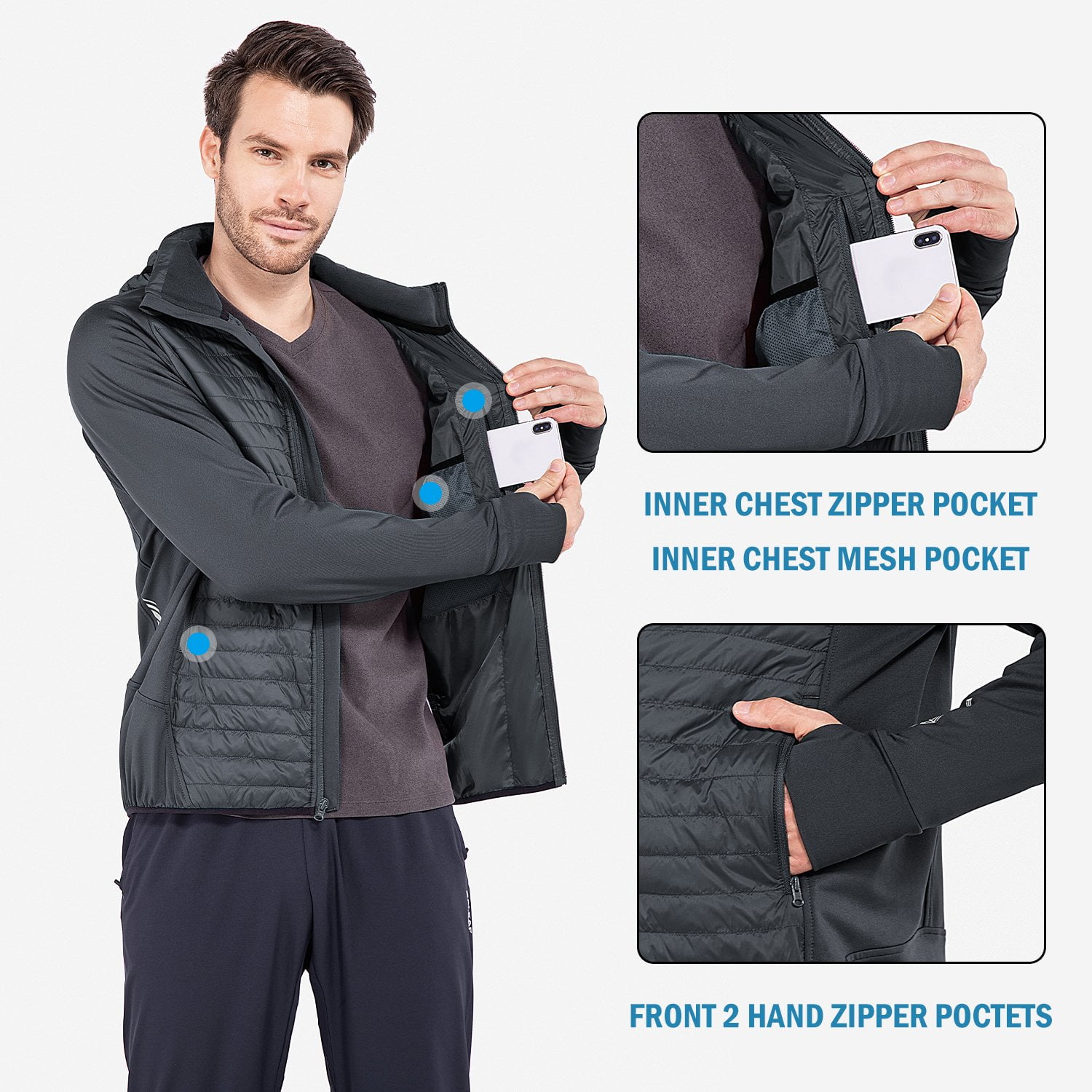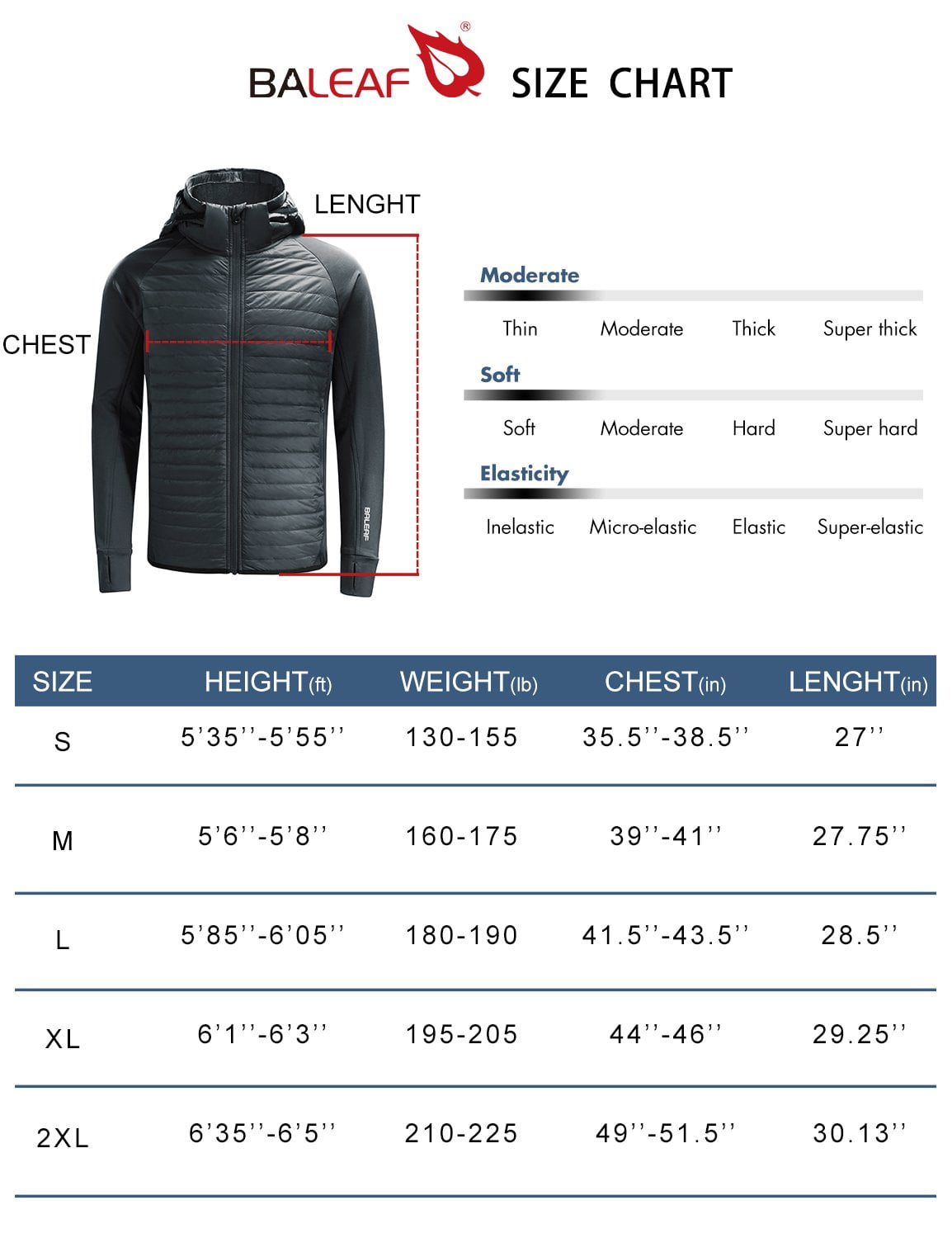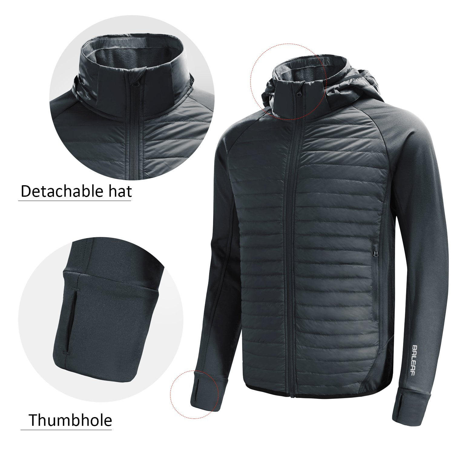 【WARM & NOT EASILY WET】Baleaf hybrid design, with quilted panels sewn into front parts to insulate cold air and retain warmth of core area. Breathable knitting materials on the side and back panels are highly breathable, wicking away moisture quickly and fabric that is not easily wet can keep you dry. Brushed fleece lining provides extra warmth 【LIGHTWEIGHT & SMALL VOLUME】Weights only 430g (approx, Size M), packs small for easy storage 【MULTIPLE POCKETS】Two side-entry hand warmer pockets with zipper for added security; one interior pockets for outdoor essentials; drawcord adjustable hem for flexible fit 【A GREAT MID LAYER】Serves as a great mid layer without feeling bulky under a hard shell coat in extreme cold condition. It is versatile as a 3-season jacket in fall, winter and spring 【FREEDOM OF MOVEMENT】Sleeves, side and back panels are made with 5% Spandex synthetic materials which stretch well. Great for climbing and other activities requiring free movement. And keep you warm during outdoor activities