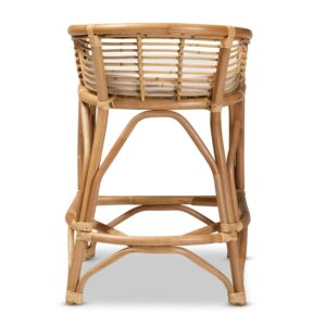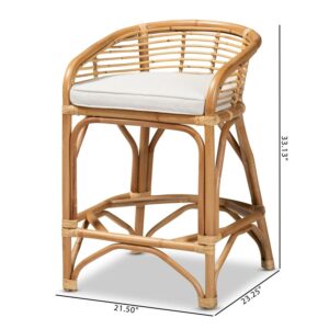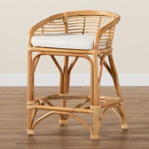 bali and pari Maverick Modern Boho White Fabric Upholstered and Brown Rattan Counter Stool
