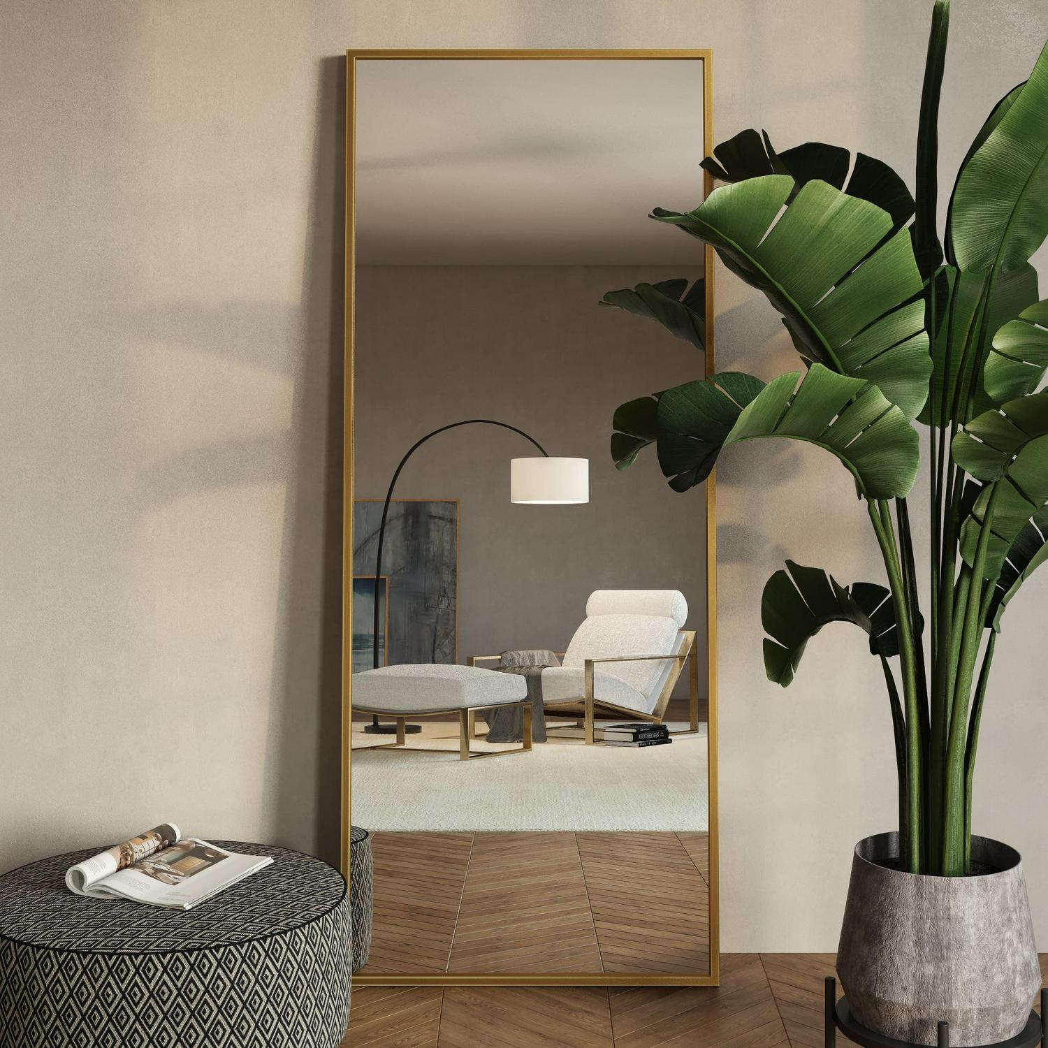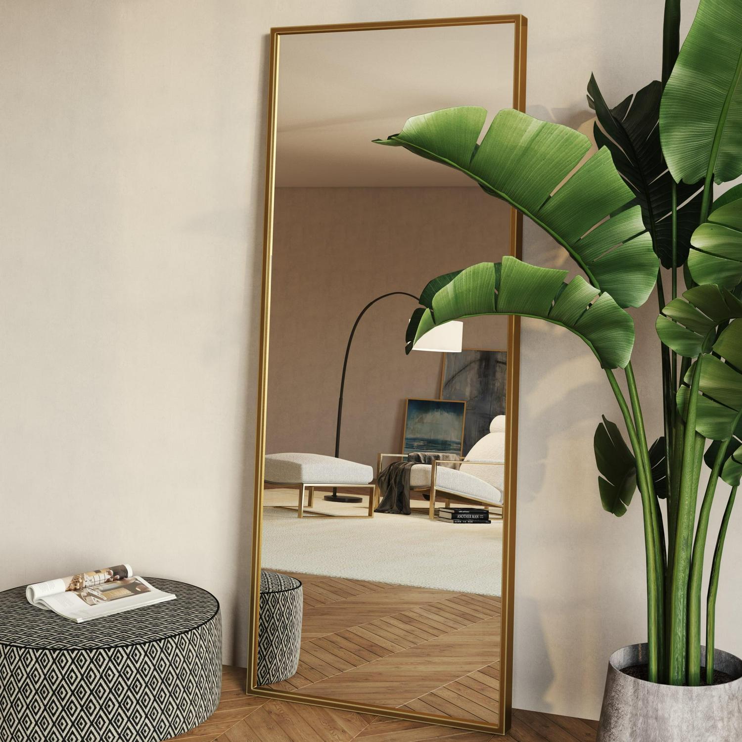 Bali Modern Minimal 70×28 Gold Leaner Mirror by Aspire Home Accents