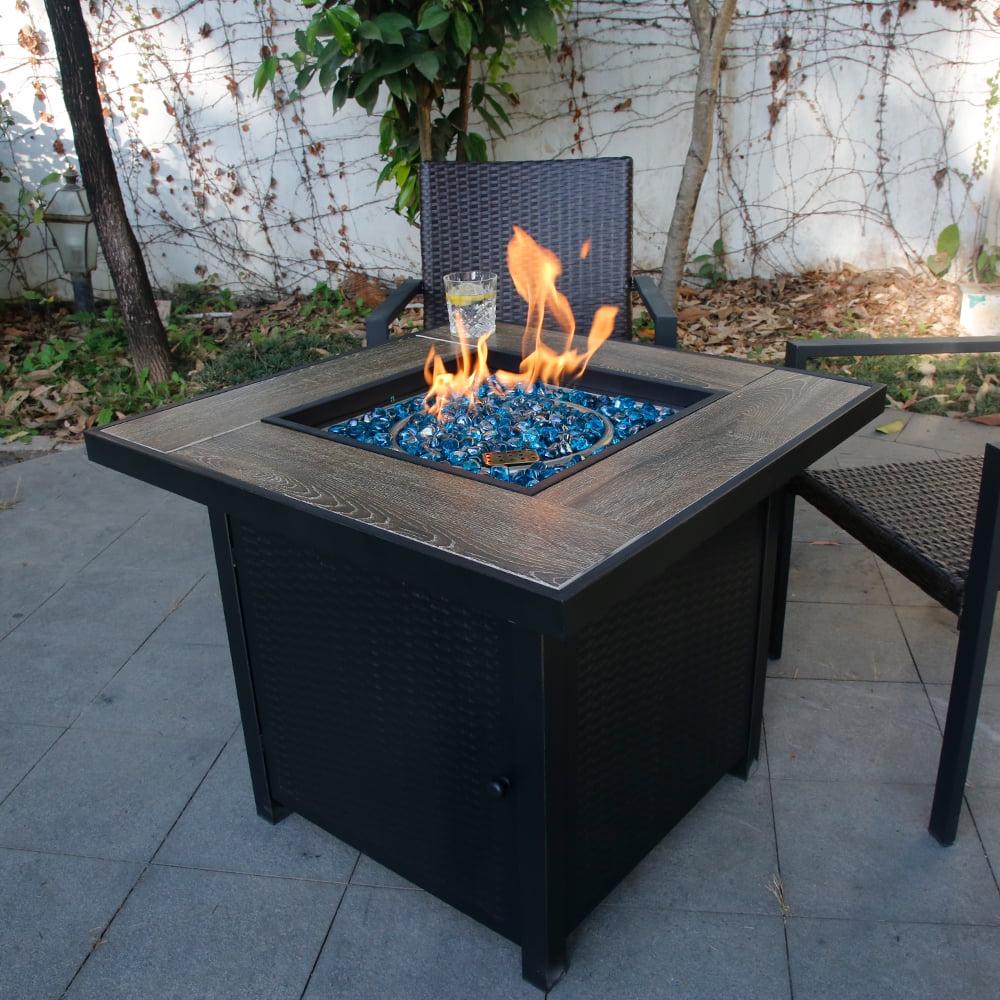 BALI OUTDOORS 30 in. Gas Fire Pit Table will compliment any outdoor space. Frame is made of steel in a black finish. Includes black fire glass.