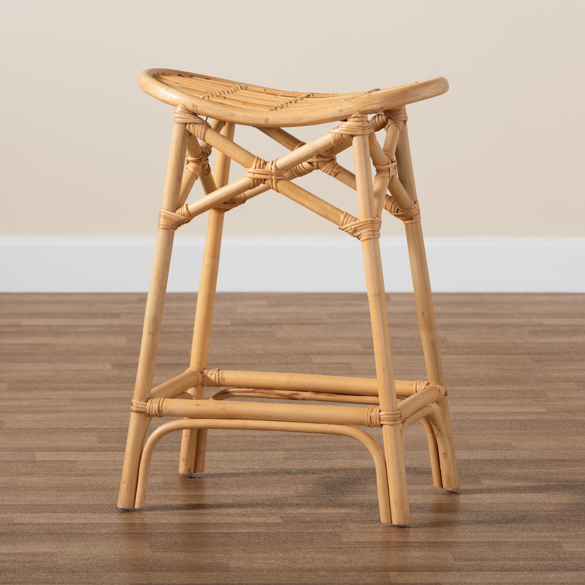 Baxton Studio Elgon Modern Bohemian Natural Brown Rattan Counter Stool