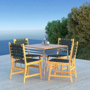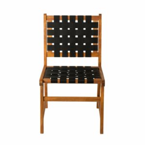 The Balkene Home Sava Sling Patio Dining Chair is midcentury-inspired modern seating with a solid acacia wood frame and woven webbing seat and back. The attractive teak-toned finish is the perfect accent for any patio or indoor dining area. The comfortable design is perfect for a relaxing meal alfresco, or a modern dining set. The Sava Dining Chair can be used all season long with basic care and maintenance, and may be easily stored away in the off-season thanks to its folding design.