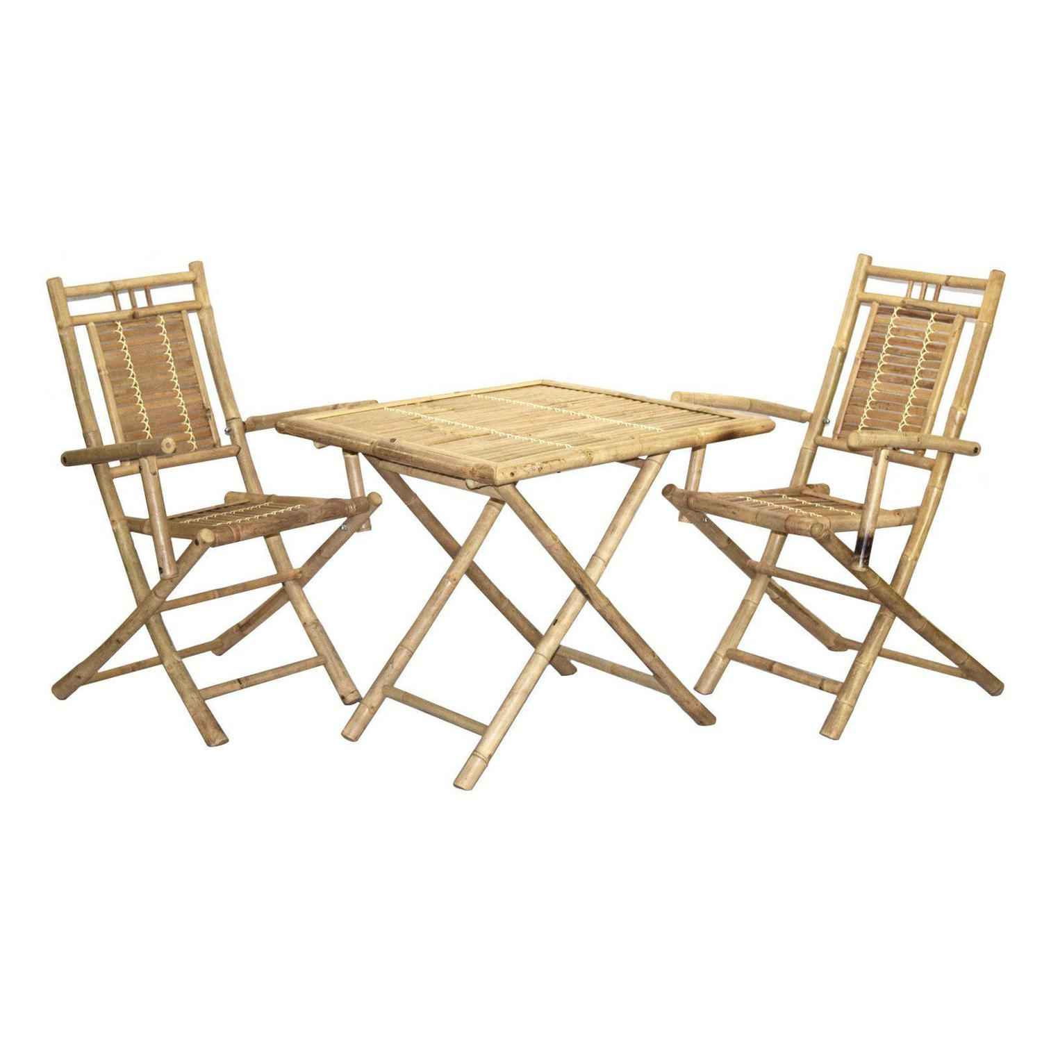 The Bamboo54 Wood 3 Piece Square Outdoor Bistro Set s bamboo construction brings a natural element to your decor, ideal for a porch or patio, or to bring an outdoor feel to your indoor space. This three-piece set folds up for easy storage, offering convenience when you need it.