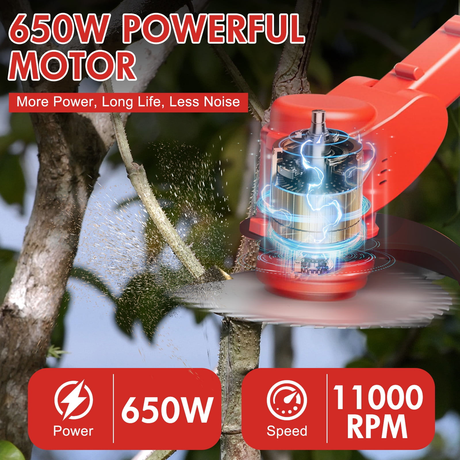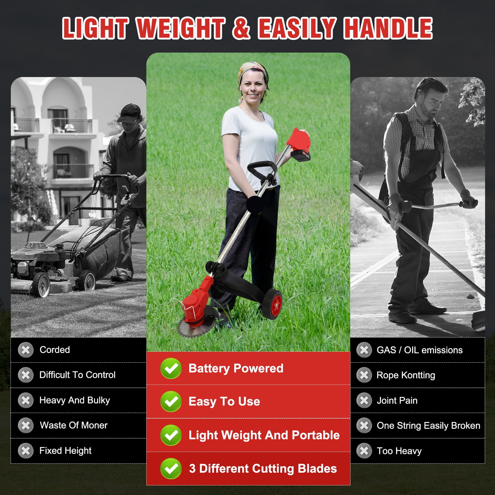 Baokaler Grass Trimmer Cordless Electric Weed Eaters Weed Trimmer, 6 inch Weed Wacker Kit with Upgraded Wheels, 1 BatteryRed