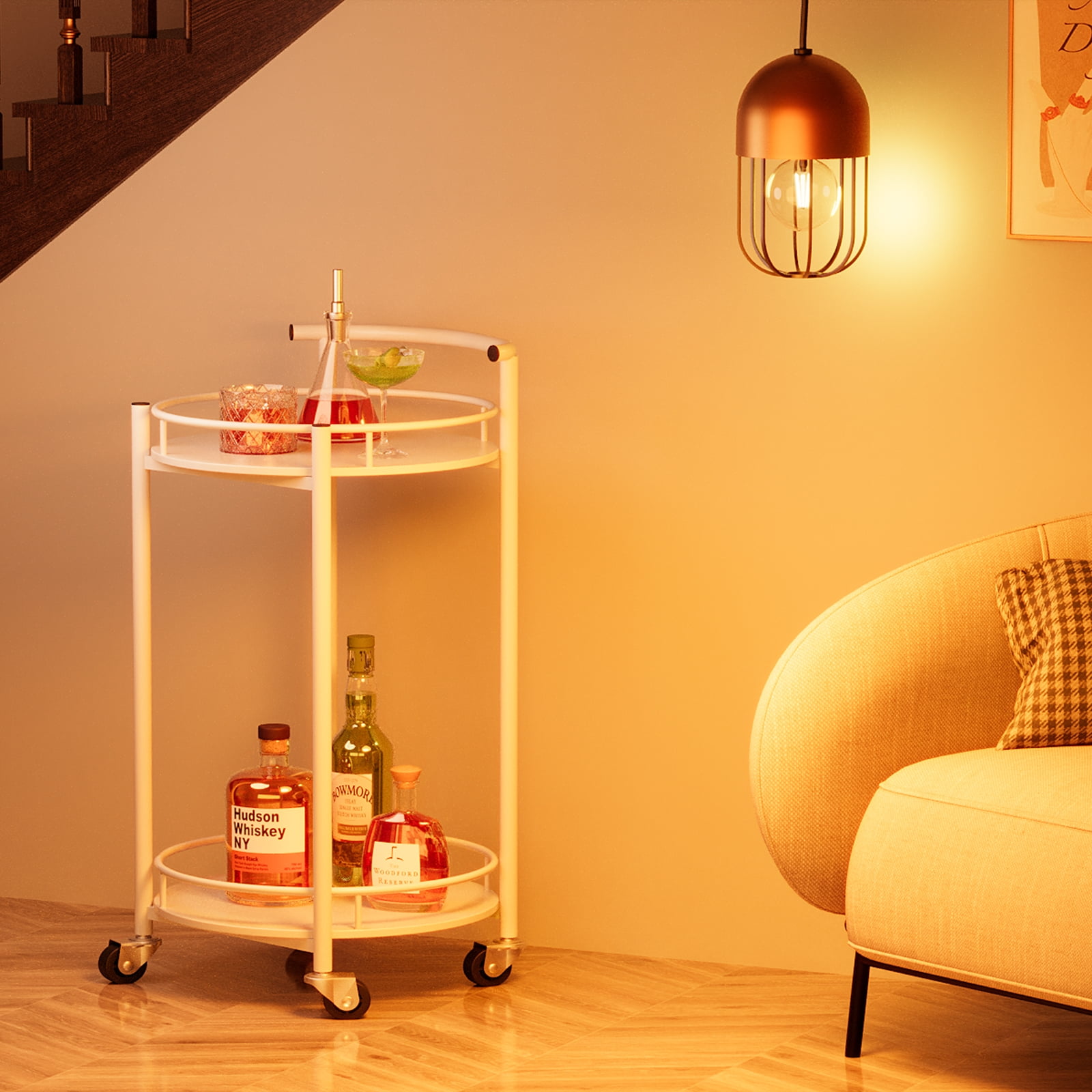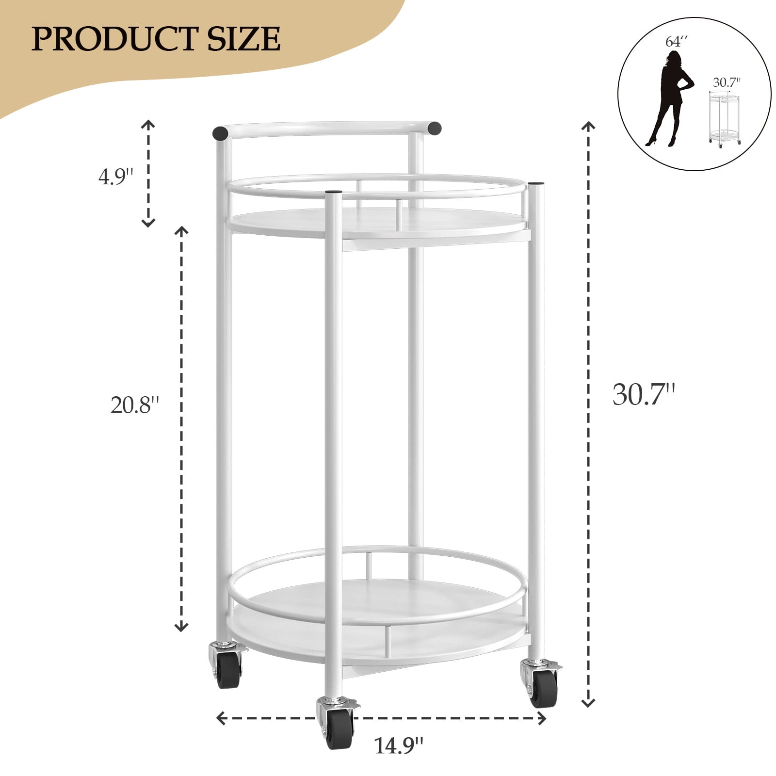 Bar Rolling Cart Round Wine Cart Simple & Beautiful Azheruol 2 tiers round rolling cart is particularly eye-catching due to its modern simple design. The high-quality steel wine cart with simple and smooth lines,showcases an elegant and noble sense of modernity. Widely Use 3 colors you can choose of our bar serving cart suitable for a variety of occasions,The compact size of this cart is ideal for use in bathrooms, study rooms, apartments, motorhomes, bedrooms, etc.It is a great gift for Thanksgiving, Christmas, New Year, birthday,parties, etc. Specifications: Item Dimensions:14.9×14.9×30.7inches Material: Steel Color: White Item Weight:8.5 LB