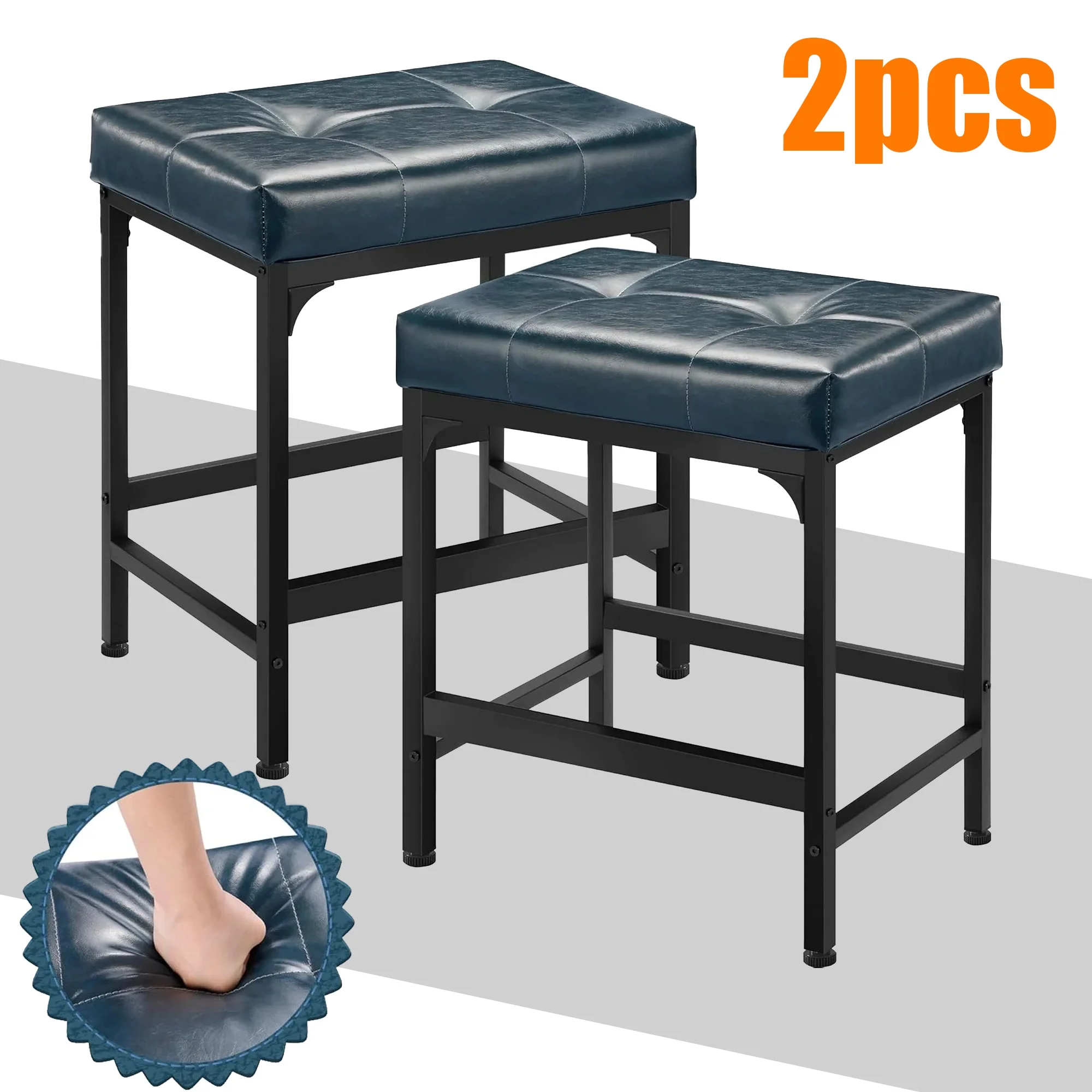Elevate your kitchen island or dining area with our Osoeri Bar Stools Set. This set includes two counter height bar stools, each measuring 24″ in height and featuring a 19.3″ wide seat for ample comfort. The stools are upholstered in stylish blue PU leather, offering easy maintenance and a vibrant look. Supported by a durable metal base, these stools ensure stability and a weight capacity of 250 pounds. With their modern design, these bar stools are perfect for both residential and commercial settings, adding a touch of elegance to any space. Easy assembly and a sleek blue finish make these stools an ideal choice for your seating needs.