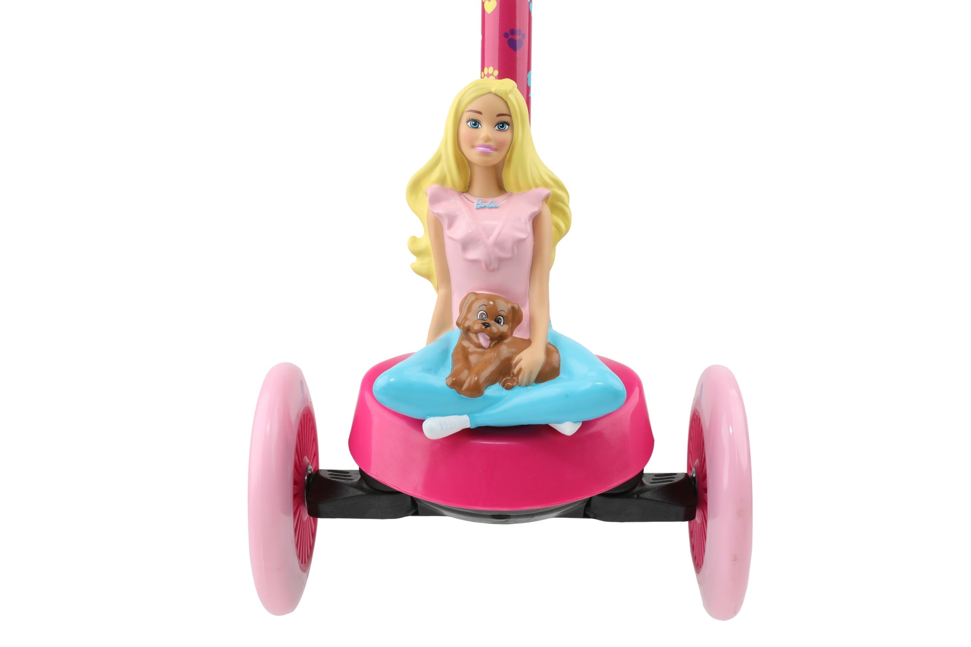 Barbie 3D Scooter with 3 Wheels Tilt and Turn- Pink, For Girls Ages 3+, Max Weight 75lbs, Foot-Activated Brakes