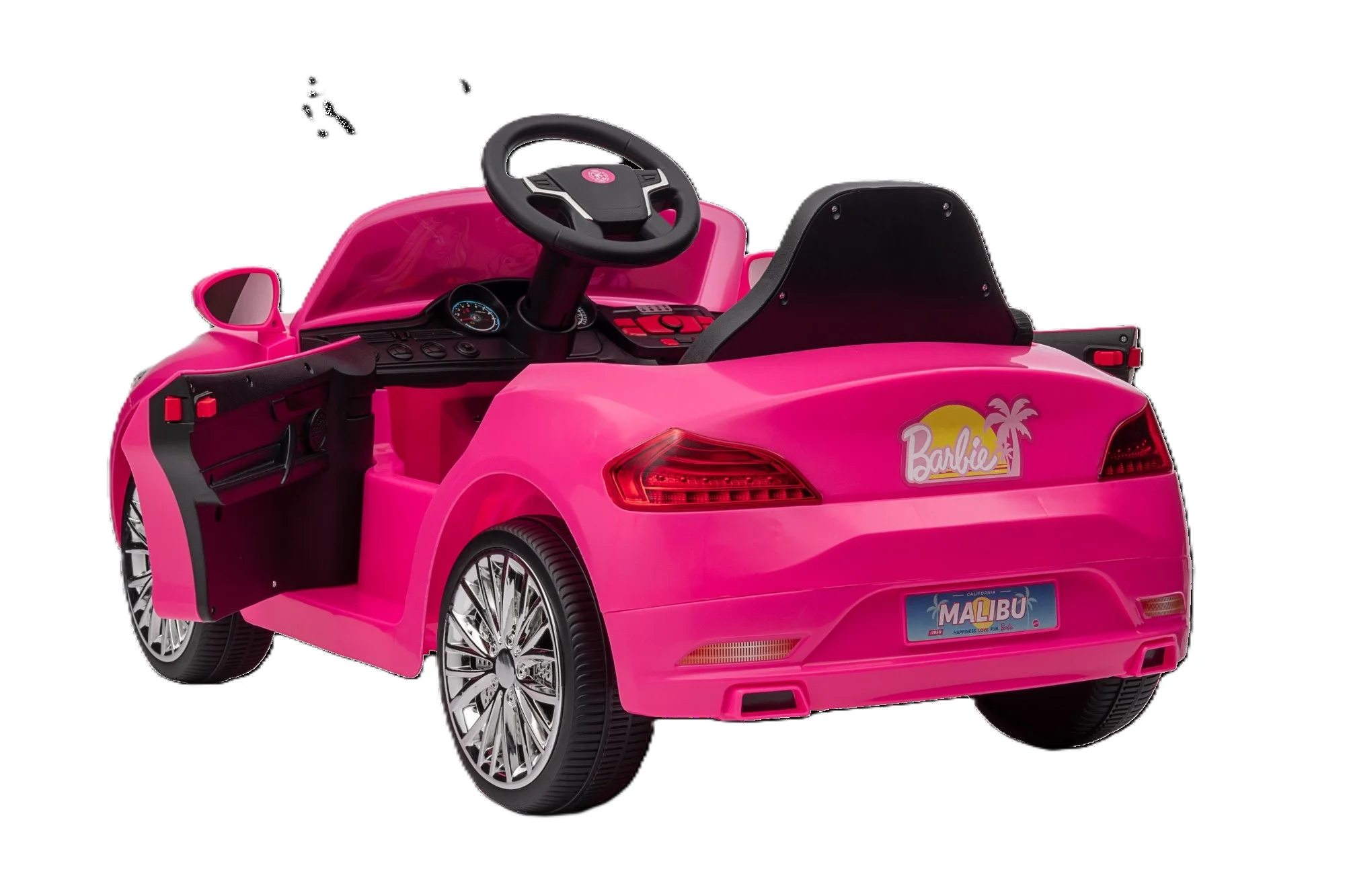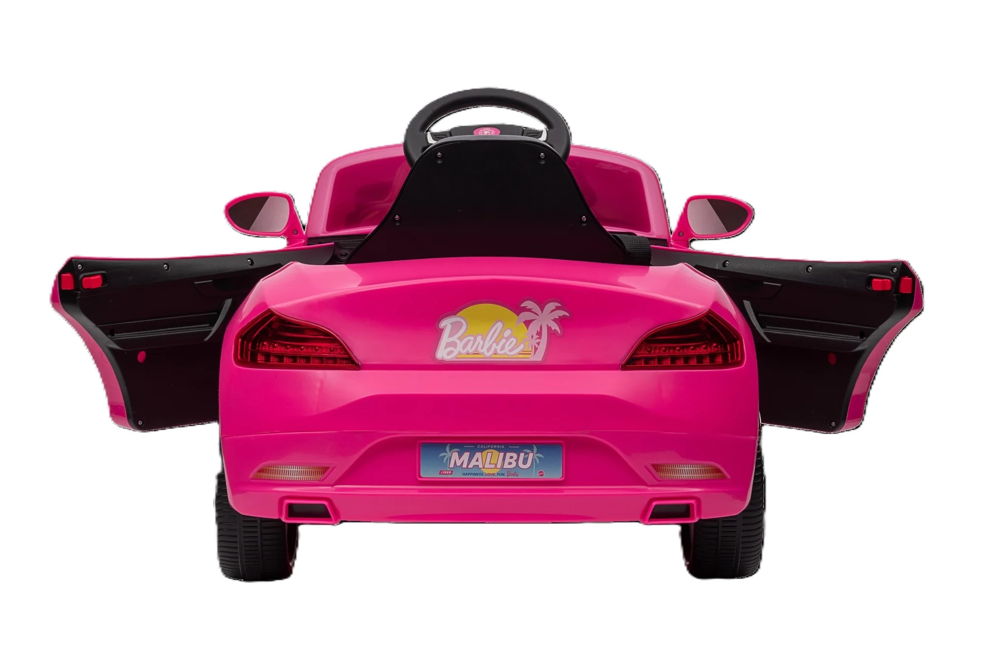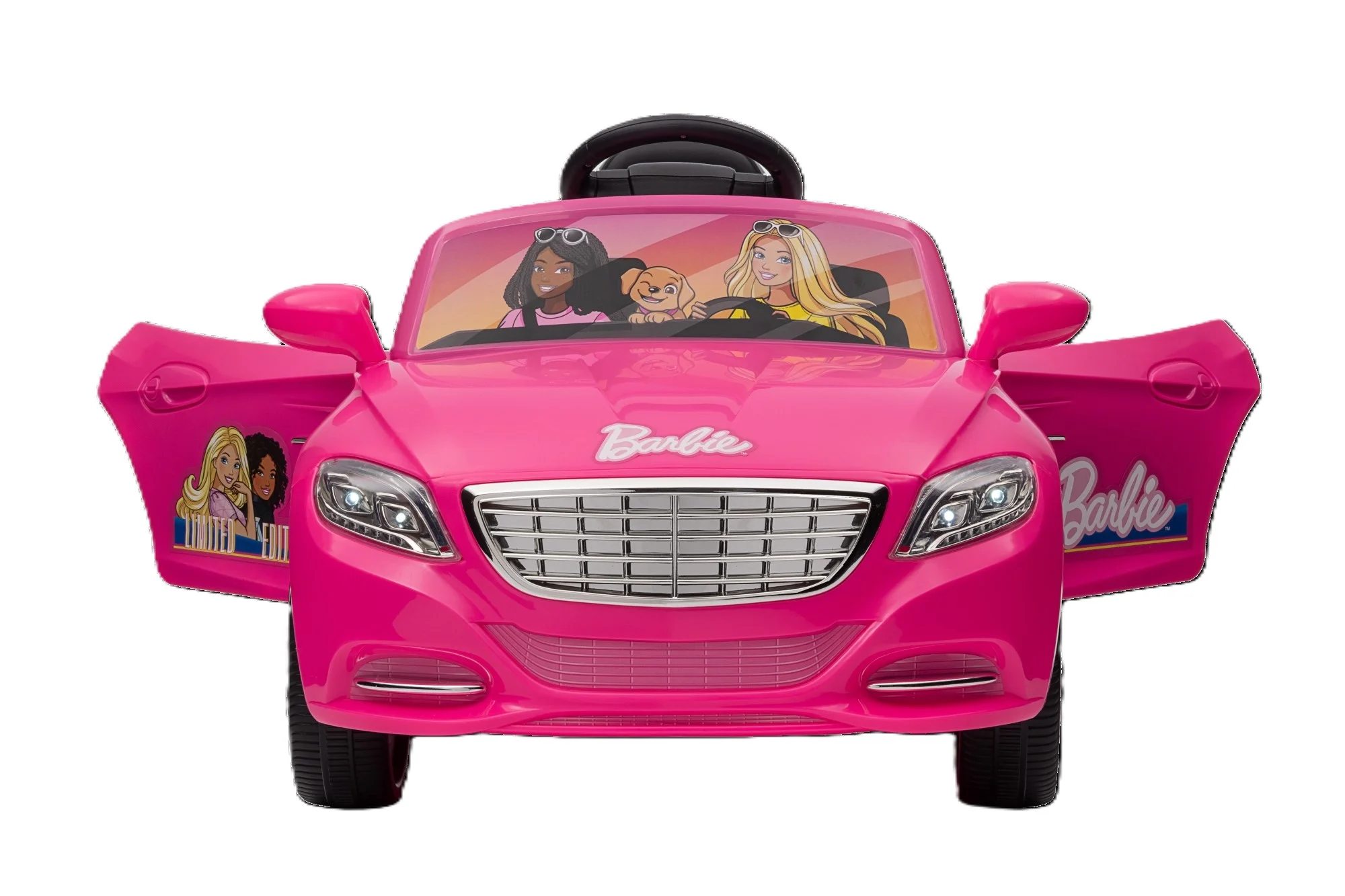 Iconic Barbie Styling: Features a vibrant pink color scheme with stylish Barbie graphics and design, capturing the essence of the fun and fashionable Barbie world. Powerful 6V Battery: Equipped with a reliable 6V battery that provides a safe yet exciting riding experience for young drivers. Realistic Driving Features: Includes a working steering wheel and a horn to offer a more immersive play experience. Safety First Design: Constructed with a durable, low-to-the-ground build that ensures stability and safety for young riders. Easy Operation for Kids: Simple push-button operation makes it easy for little ones to start, ride, and stop independently. Perfect for Outdoor Adventures: Ideal for driving on flat surfaces, this ride-on is great for young explorers looking to embark on outdoor adventures. Suitable for Ages 3 and Up: Designed for young children, providing a fun and safe introduction to riding. 2.4G Remote Control Included: For parents to help drive younger riders. Durable 4-wheel suspension and 2-operating doors for easy access. 2mph max speed.