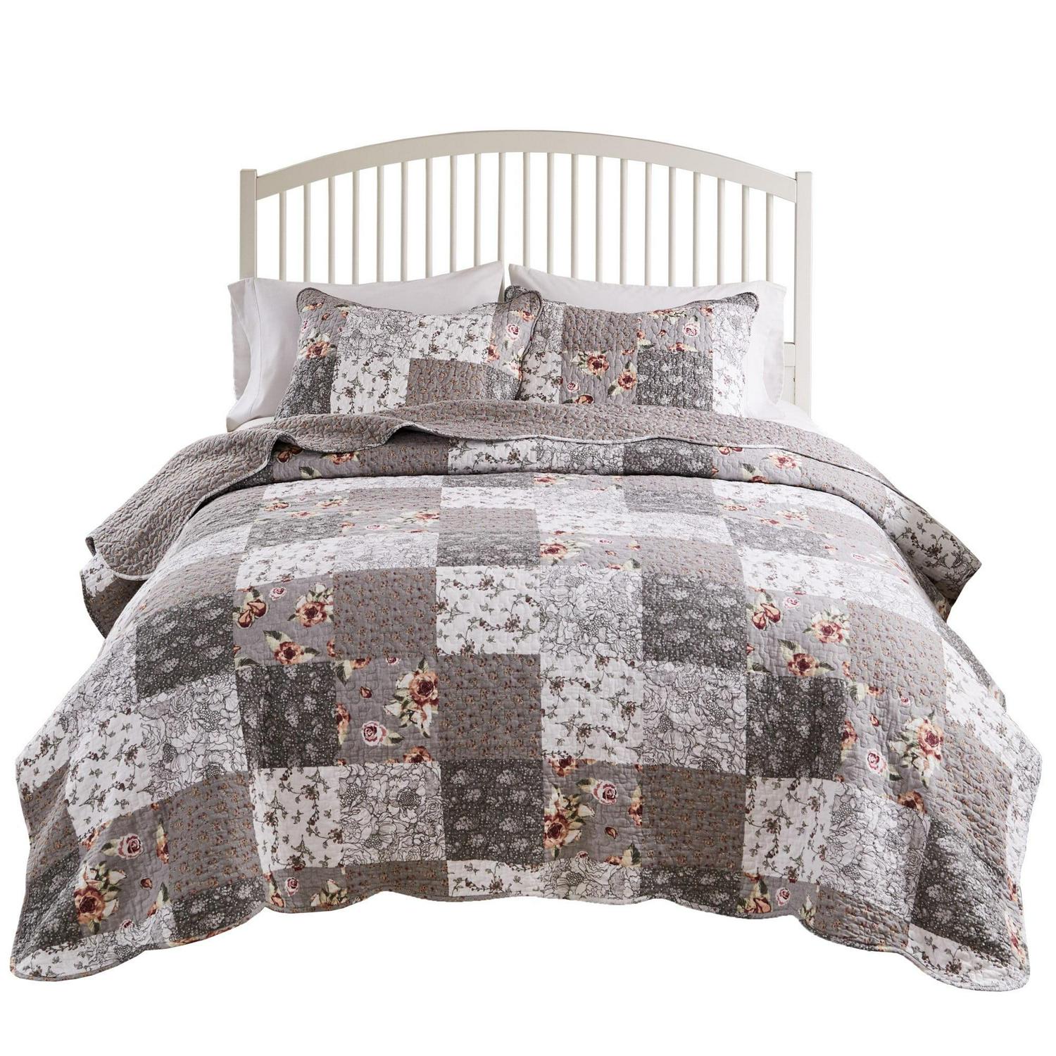 Experience the luxurious Giulia quilt set, designed for adults seeking casual elegance. This reversible quilt showcases fabulous floral and stencil prints in white and gray, offering refined style without extravagance. Its classic patchwork pattern complements various color schemes and reverses to a ditsy floral print for versatile looks. Crafted for today’s deeper mattresses with an oversized design, it comes prewashed for extra softness and features durable, fabric-bound edges. The set includes one 105×95-inch quilt and two 20×36-inch pillow shams. Machine washable for your convenience. Enjoy the quality, value, and style of Barefoot Bungalow.