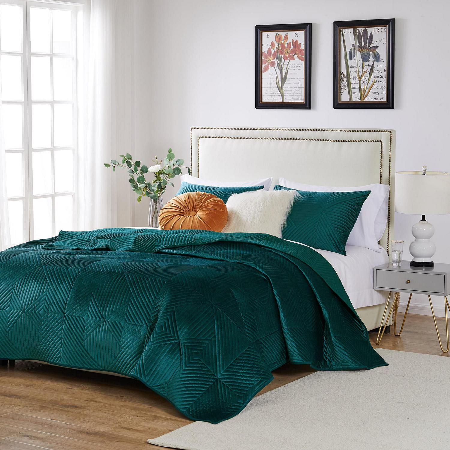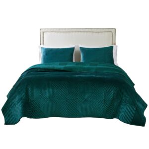Barefoot Bungalow Riviera Velvet Mid-Century Modern Quilt Set, Teal, 2-Piece Twin/Twin XL