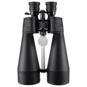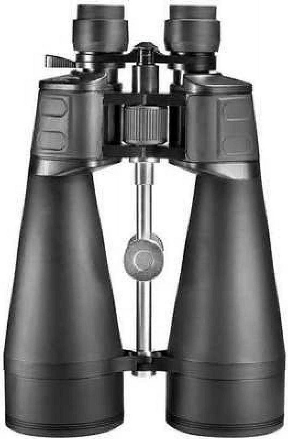 The powerful 20-140×80 Gladiator Zoom Binoculars from Barska have been designed specifically for long distance terrestrial and astronomical viewing. The 20-140x magnification range of these Barska Gladiators allow the viewer to scan a large field of view and then zoom in on the selected object for a closer look. A zoom thumb-lever allows the user to quickly zoom in or out without having to take their eyes off of the binoculars. Large 80mm objective lenses help increase light transmission in low light conditions to deliver a stunning view day or night, and the Gladiator’s multi-coated lenses and BAK-4 prisms provide optimal clarity for enhanced detailed viewing. The Barska 20-140×80 Gladiators also feature a sturdy mounting brace that allows the user to attach these binoculars to a tripod (sold separately) for a stabilized viewing experience