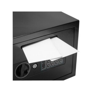The keypad depository safe is built to safeguard cash from thieves or employees. The two solid-steel deadbolts guard essential deposits while anti-fishing and jagged-edge teeth on the door slots keep the safe from being picked.