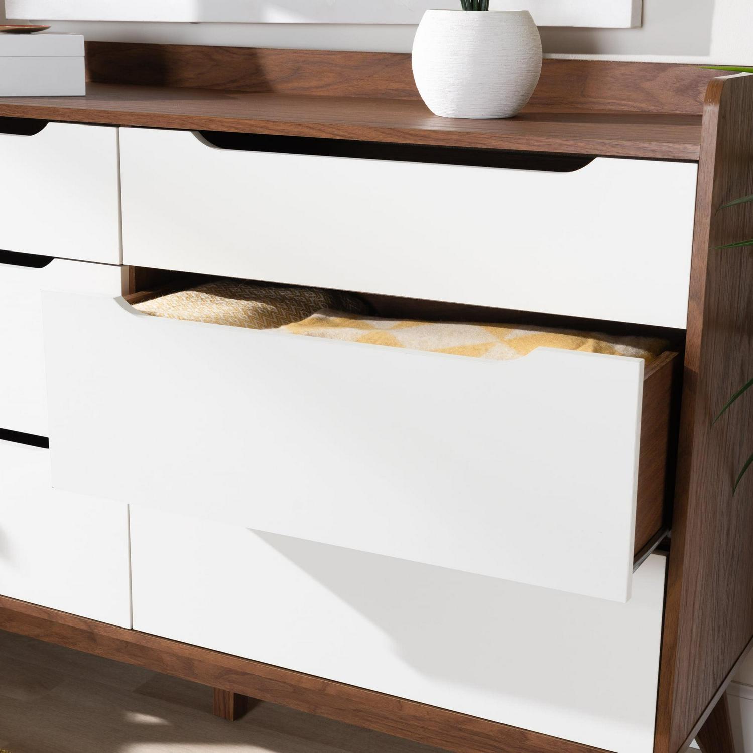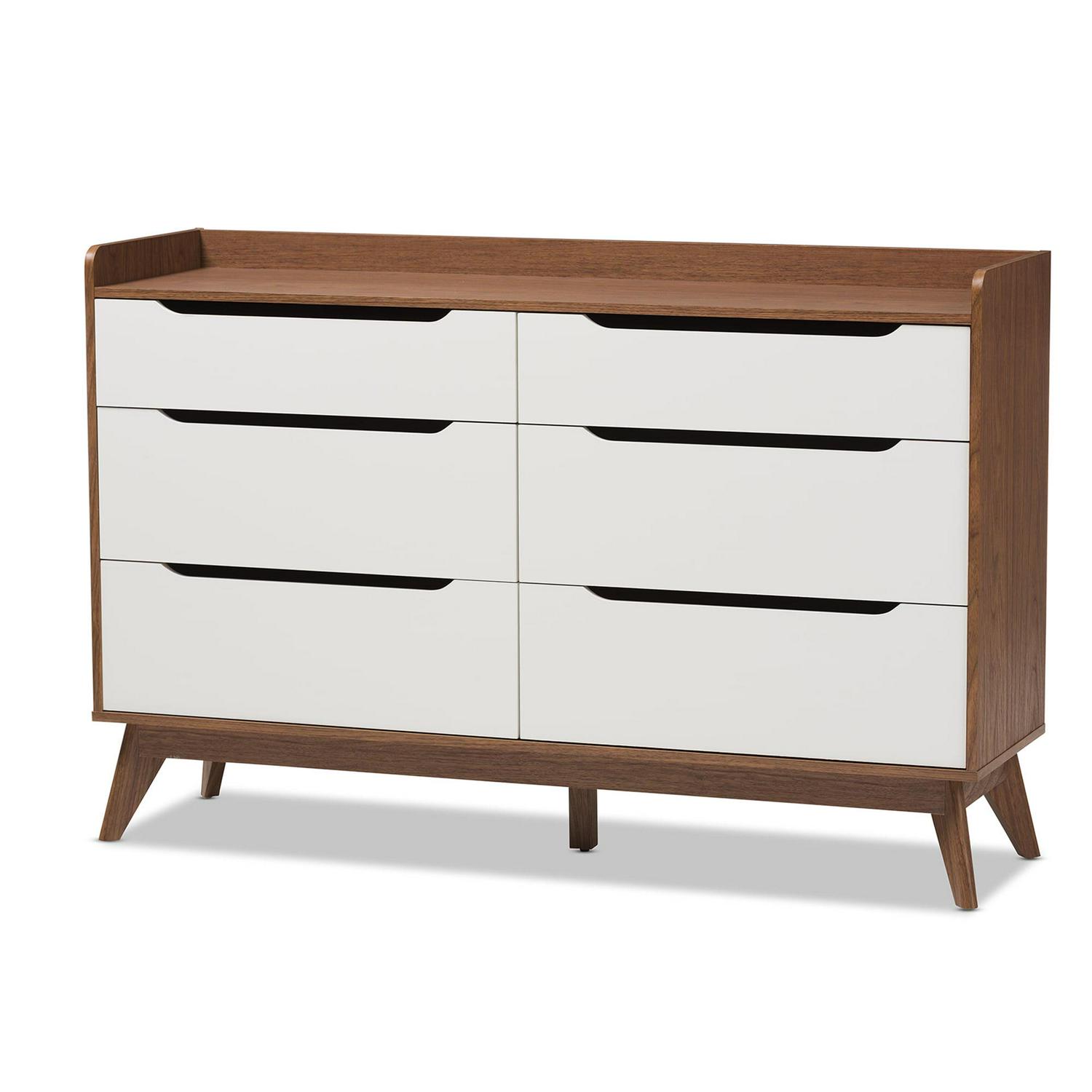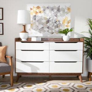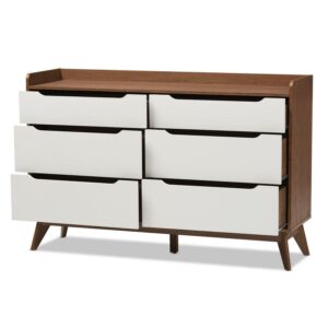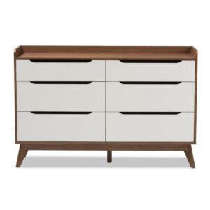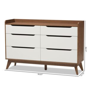 Bartel Modern White and Walnut Wood 6-Drawer Storage Dresser by Bellamy Studios