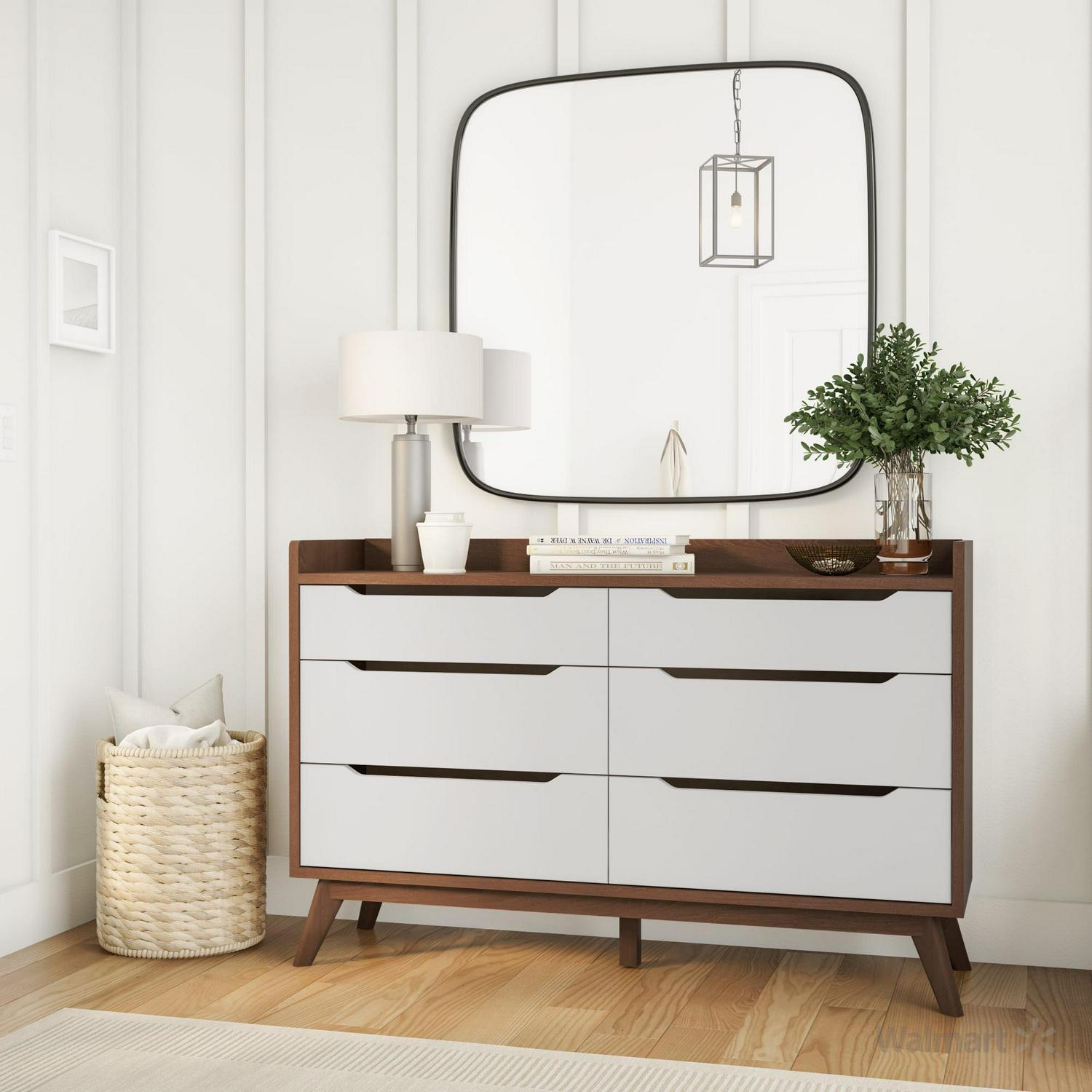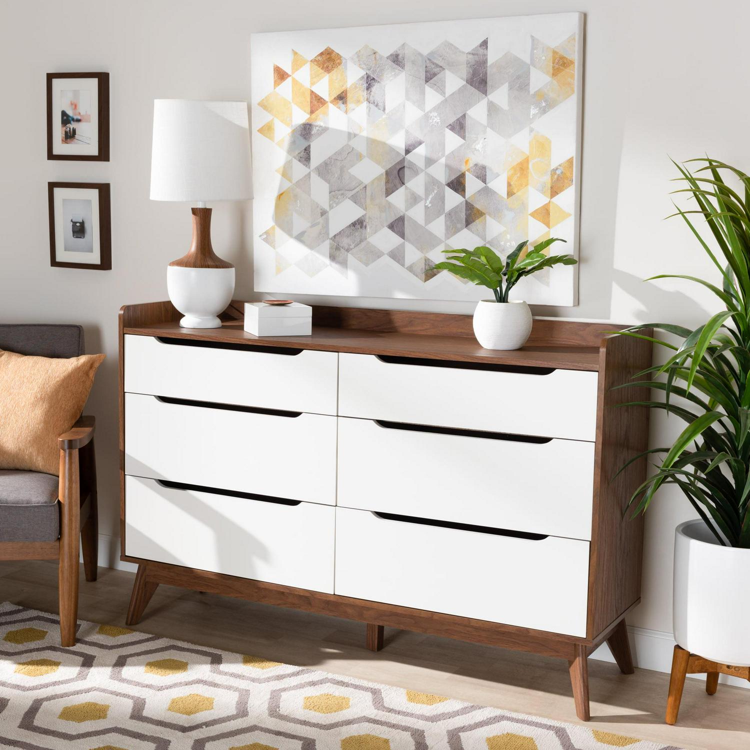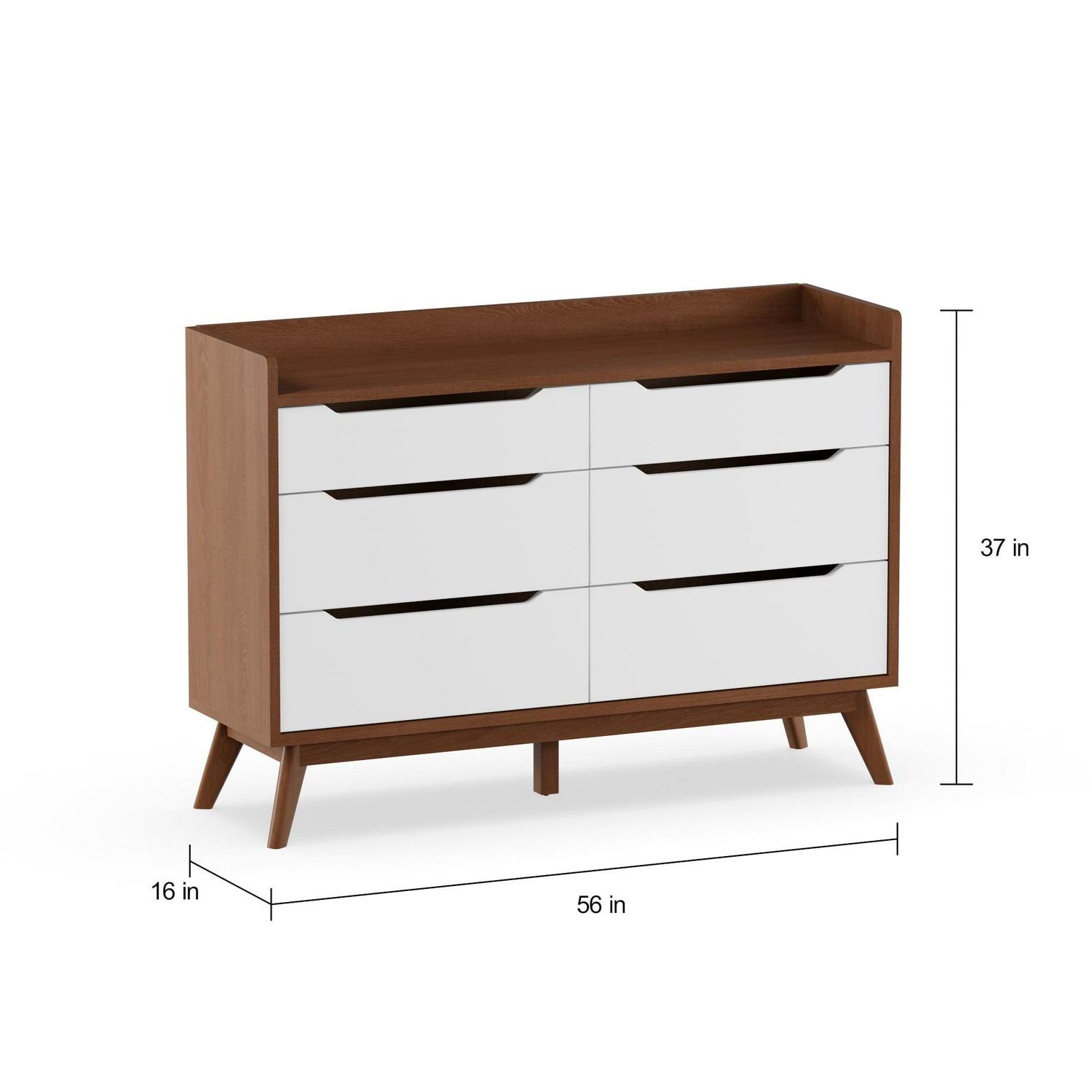 Bartel Modern White and Walnut Wood 6-Drawer Storage Dresser by Bellamy Studios