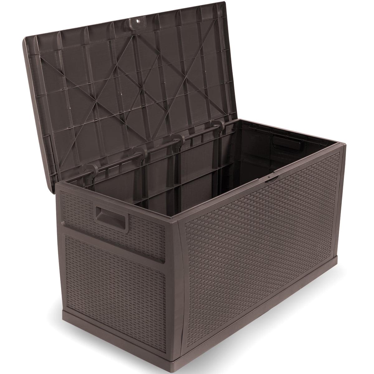 Barton 120-Gallons Outdoor Deck Box Resin Patio Storage Container Outdoor storage box Shed Large Bin Store Backyard, Brown