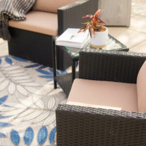 Barton 3pcs Outdoor Patio Set Seating Group Cushion Wicker/Rattan with Table Set, Black/Beige