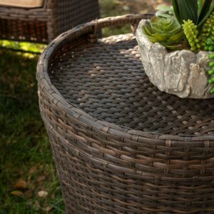 – Weather & Water Resistant – Made of PE rattan wicker that is UV & Water resistant material to prevent fading and cracking caused by sunlight. The steel frame is more lightweight and durable and is powder-coated to prevent rust and other corrosion