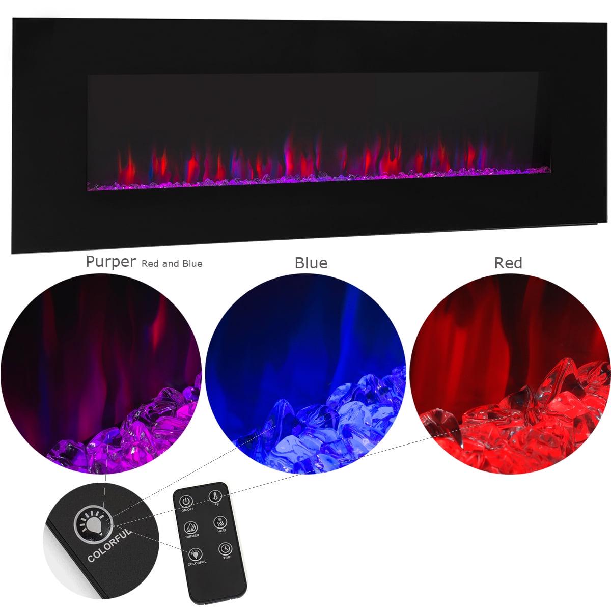 Barton 50 Wall Mount Electric Fireplace Changeable Flame Glass + Remote Control, 750W/1500W