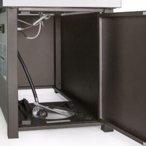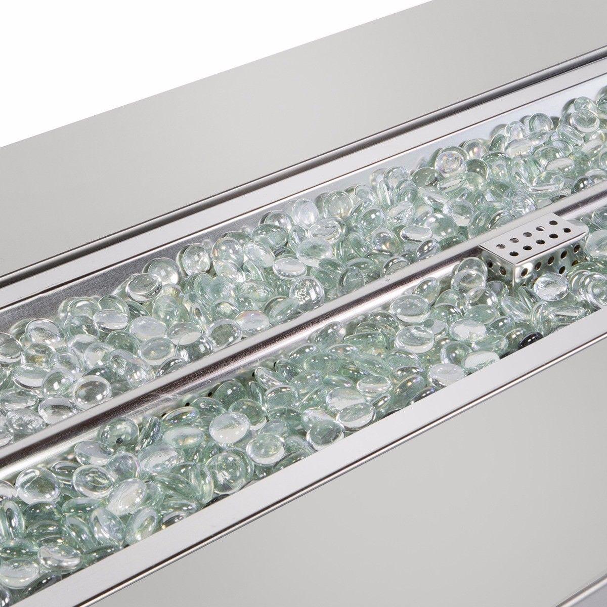 This modern looking weather-proof fire pit is made from a stainless steel alloy and powder coated body. The standard configuration is a 20lbs lpg tank with an sure fire trigger for easy lighting. The burner has an adjustable heater and can burn at 50,000 BTUS. This set includes glass beads and a nylon cover to preserve the fire pits table’s quality when not in use.