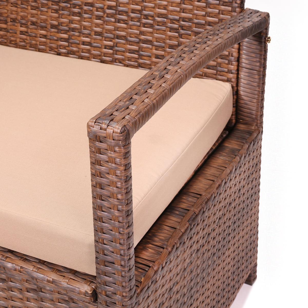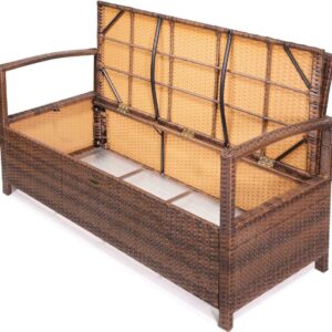 Barton All-Weather Deck Box Bench Storage with Backrest Armrest Wicker with Seat Cushion, Brown