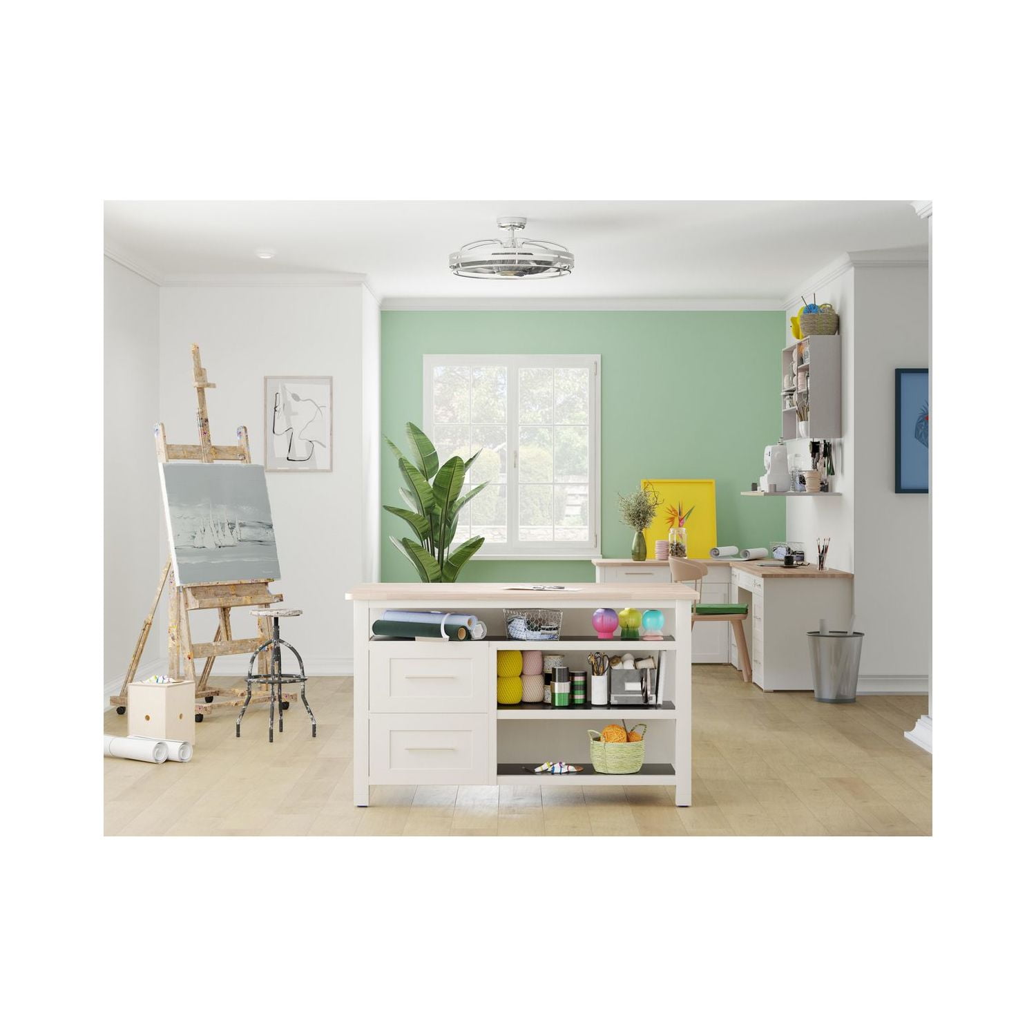 Cage-style fan is ideal for living rooms, bedrooms, dens, offices, patios, and porches Rustic industrial styling brings a vintage touch to transitional, urban industrial, rustic and vintage electric settings Three curved ABS fan blades for better air movement, blades are hand finished in a Grey Weathered Wood with an outer cage finished in smooth Brushed Nickel Measures 26 in. Dia x 13.6 in. H Includes 3 speed handheld remote control with battery and wall bracket. Certifications: ETL Damp Location Listed, suitable for use indoors or in outdoor covered areas Lighting experts recommend installing this fan in a room up to 144 sq. ft. for optimal performance Powered by an efficient AC Motor Includes Lifetime Limited Warranty