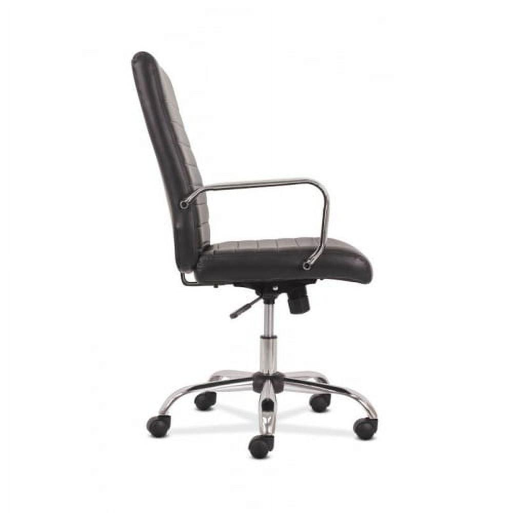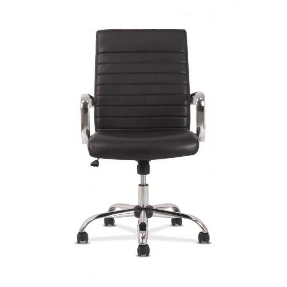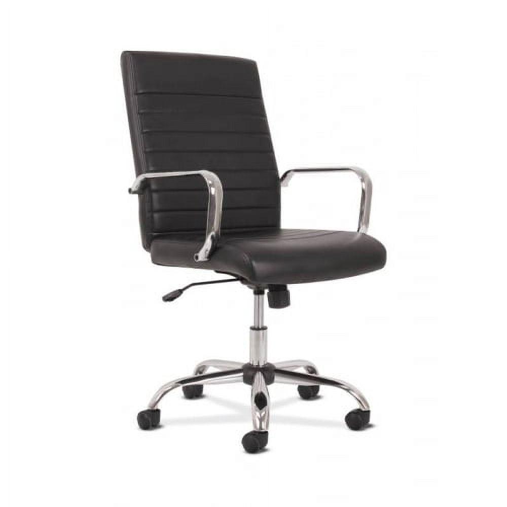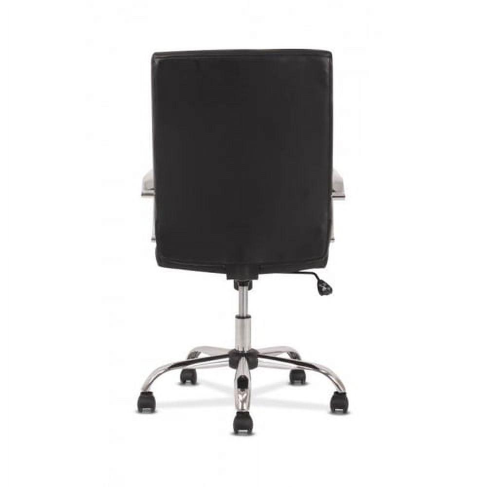 ERGONOMIC POSTURE SUPPORT: Fully adjustable seat height and seat back recline match your comfort and work preferences. FIXED ARM OFFICE CHAIR: Sculpted Chrome arms provide comfy all-day support for upper body and shoulders. Black bonded leather with Chrome base. ROLLING OFFICE CHAIR: Smooth-rolling casters and durable wheels hold up even under heavy use. WARRANTY & SUPPORT: Relax knowing this computer chair is backed by the basyx by HON Limited 5-Year Warranty.